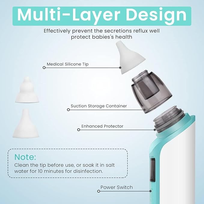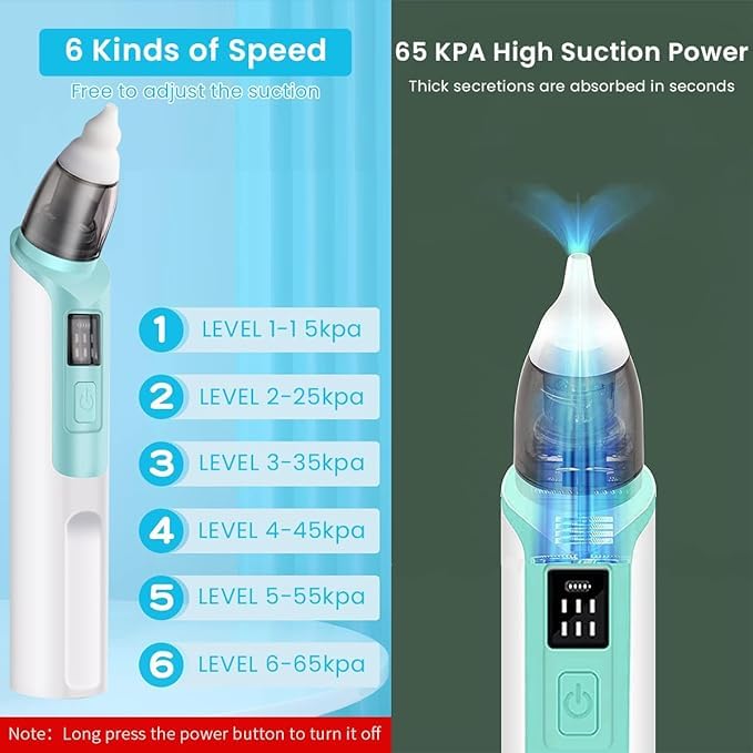 - Customizable Suction Settings: Offers 6 adjustable suction levels to accommodate your child's specific needs, ensuring gentle and effective mucus removal for improved breathing and sleep.
