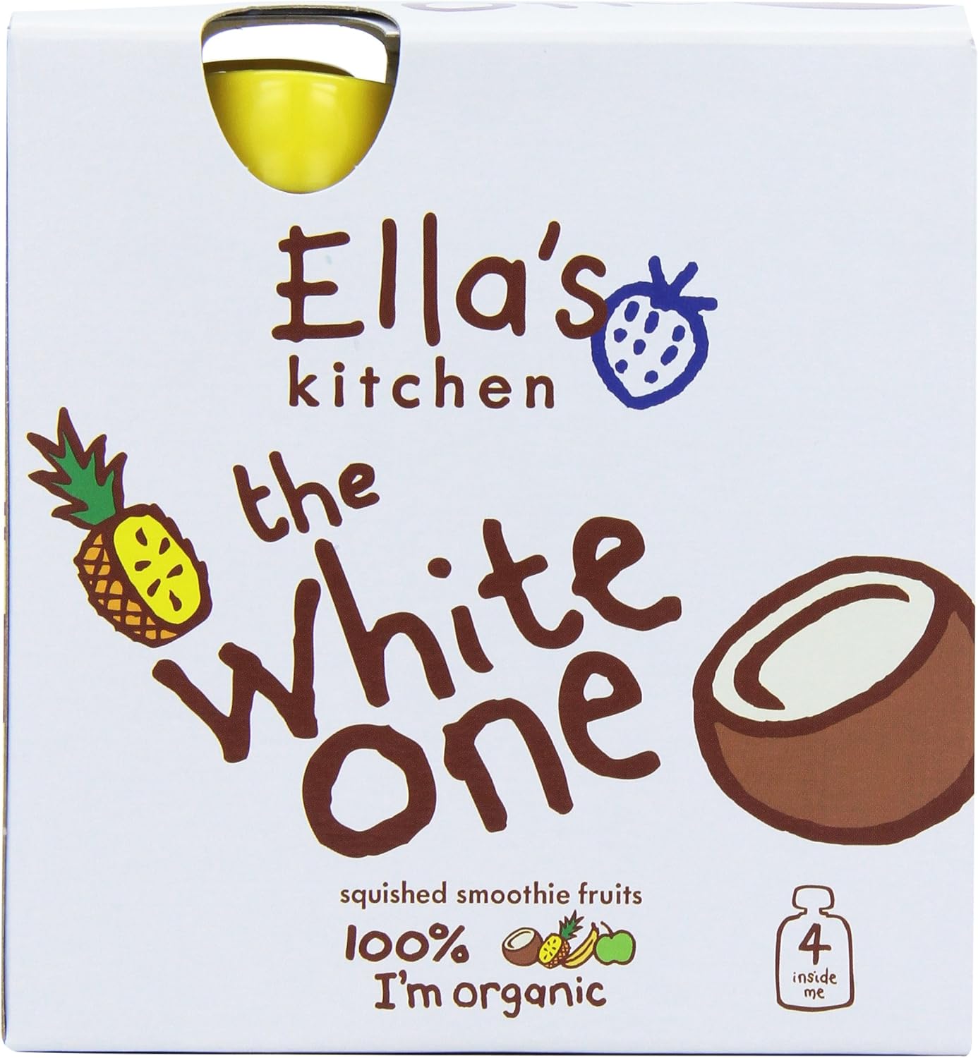 Product Description 100% organic squished fruits packed with apples, bananas, coconut milk, pineapples, melon juice + dash of lemon juice. I’m a handy smoothie fruit snack with nothing else added, not even water. Ingredients Ingredients: Organic bananas 32% )Organic apples 30% Organic pineapples 23% Organic coconut milk 15% Organic lemon juice concentrate (a dash) Other stuff 0%] P.when('A').execute(function(A) { A.on('a:expander:toggle_description:toggle:collapse', function(data) { window.scroll(0, data.expander.$expander[0].offsetTop-100); }); }); Directions Open the pouch and consume the product. Box Contains Each order comes with 3 x Ellas Kitchen Organic The White One Fruit Smoothie 90 g Manufacturer Contact Information Ella's Kitchen See more,Organic smoothie fruit snack,Made from coconut milk, pineapples, bananas and apples,Good nutrition with fantastic taste,Healthy Alternative