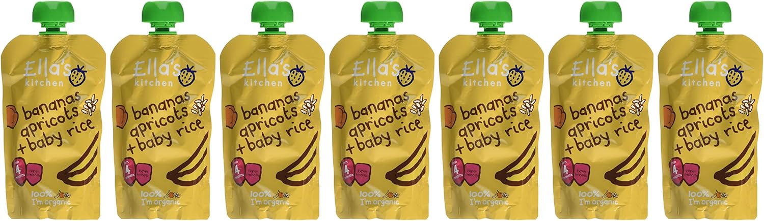 Product Description We think it's important to always approach things from a child's point of view. So, we've taken simple, natural ingredients that ooze goodness and created foods, and packaging, that should really connect with kids - with flavours, colours, textures and even names that will appeal to all of their senses. Ingredients Bananas, Apricots, Ground Brown Rice P.when('A').execute(function(A) { A.on('a:expander:toggle_description:toggle:collapse', function(data) { window.scroll(0, data.expander.$expander[0].offsetTop-100); }); }); Directions Stored in cupboard. Once opened, I can be kept for 48 hours in a fridge. Do not reheat. I'm Best Before End (see date code on pouch). Manufacturer Contact Information Ella's Kitchen, Ella's Barn, 22 Greys Green Farm, Rotherfield Greys, Henley-on-Thames, RG9 4QG. See more,100% organic bananas, apricots and baby rice with nothing else added, not even water,Suitable from 4 months,Perfect for babies that get hungrier but aren't yet ready for protein,No additives or thickeners and no added sugar or salt,Meets soil associaton organic standards
