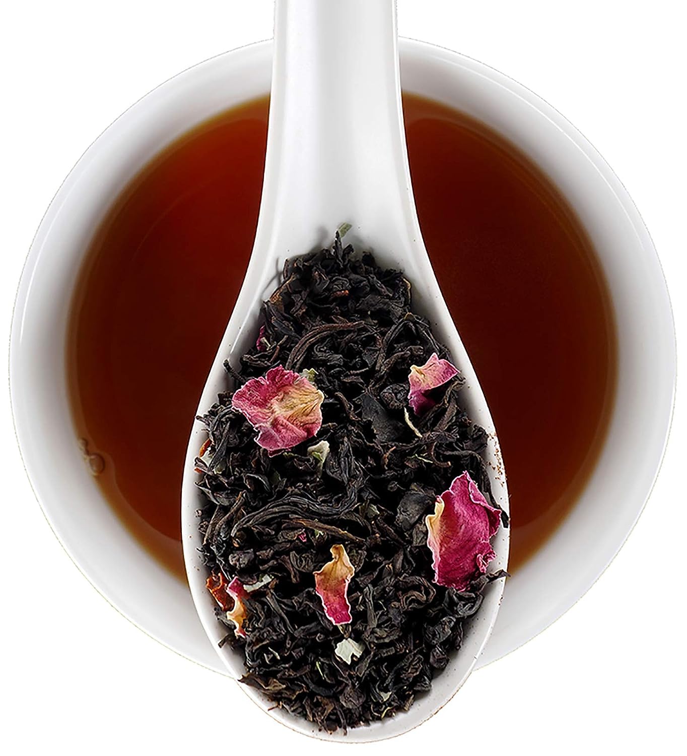 Enjoy this exceptional Sri Lankan OP grade tea made even more appealing with dried rose petals. It's very Victorian. Blended by one of America's oldest small batch tea blenders