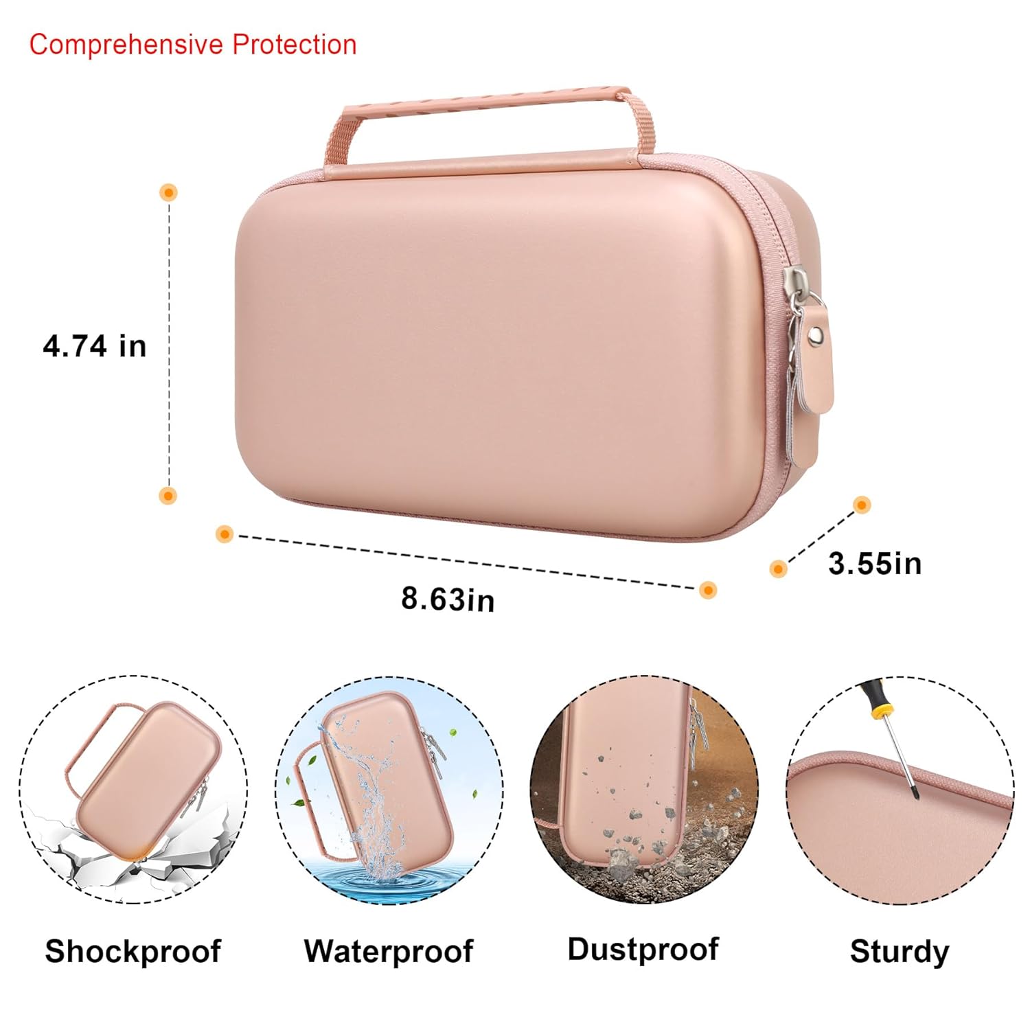 About this item ?Perfect Fit?This portable nebulizer machine carrying case, inhaler holder ?external dimensions: 8.73 x 4.62 x 2.65 inches, internal dimensions: 8 x 3.95 x 2.2 inches. (L x W x H). perfectly fit portable nebuliser handheld mesh atomizer machine for home daily use, personal inhalers nebulizador for breathing problems. (CASE ONLY! device and accessories are not included) ?Full Protection?This rugged portable nebulizer machine protective travel case, asthma inhaler case ?is made of PU leather hard EVA material and fluffy fabric lining, shockproof waterproof dust protection anti-static. the hard handheld inhaler nebulizer protective carry case is very suitable to provide travel protection for your nebulizer machine for adults and kids. ?Scientific Design?This portable asthma inhaler holder comes with extra interior zipper mesh pocket, which can fit your USB cable and batteries or mask. the nebulizer machine pocket, nebulizer case bag ?has a double zipper design, can be opened and closed freely, provides easy access to your handheld nebulizer personal inhalers asthma inhaler spacer. ?Lightweight Practical?The stylish handheld inhaler nebulizer carrying storage holder bag is featured with a elastic bands, can fix portable nebulizer rechargeable machine with case tightly and avoid shake at will. protects your electric nebulizer and asthma inhaler spacer from any movement, The ultra-portable electric nebulizer case, asthma spacer kids case lightweight and compact, easy to put in backpacks, shoulder bag and luggage, ideal for daily use and travel. ?Travel Friendly?This well-designed advanced nebulizer case, asthma inhaler spacer holder ?has a very comfortable handle that allows for convenient portability on the go. suitable for traveling, hiking, camping,or storing your portable nebuliser handheld mesh atomizer machine when not in use. › See more product details,?Perfect Fit?This portable nebulizer machine carrying case, inhaler holder ?external dimensions: 8.73 x 4.62 x 2.65 inches, internal dimensions: 8 x 3.95 x 2.2 inches. (L x W x H). perfectly fit portable nebuliser handheld mesh atomizer machine for home daily use, personal inhalers nebulizador for breathing problems. (CASE ONLY! device and accessories are not included),?Full Protection?This rugged portable nebulizer machine protective travel case, asthma inhaler case ?is made of PU leather hard EVA material and fluffy fabric lining, shockproof waterproof dust protection anti-static. the hard handheld inhaler nebulizer protective carry case is very suitable to provide travel protection for your nebulizer machine for adults and kids,?Scientific Design?This portable asthma inhaler holder comes with extra interior zipper mesh pocket, which can fit your USB cable and batteries or mask. the nebulizer machine pocket, nebulizer case bag ?has a double zipper design, can be opened and closed freely, provides easy access to your handheld nebulizer personal inhalers asthma inhaler spacer,?Lightweight Practical?The stylish handheld inhaler nebulizer carrying storage holder bag is featured with a elastic bands, can fix portable nebulizer rechargeable machine with case tightly and avoid shake at will. protects your electric nebulizer and asthma inhaler spacer from any movement, The ultra-portable electric nebulizer case, asthma spacer kids case lightweight and compact, easy to put in backpacks, shoulder bag and luggage, ideal for daily use and travel,?Travel Friendly?This well-designed advanced nebulizer case, asthma inhaler spacer holder ?has a very comfortable handle that allows for convenient portability on the go. suitable for traveling, hiking, camping,or storing your portable nebuliser handheld mesh atomizer machine when not in use