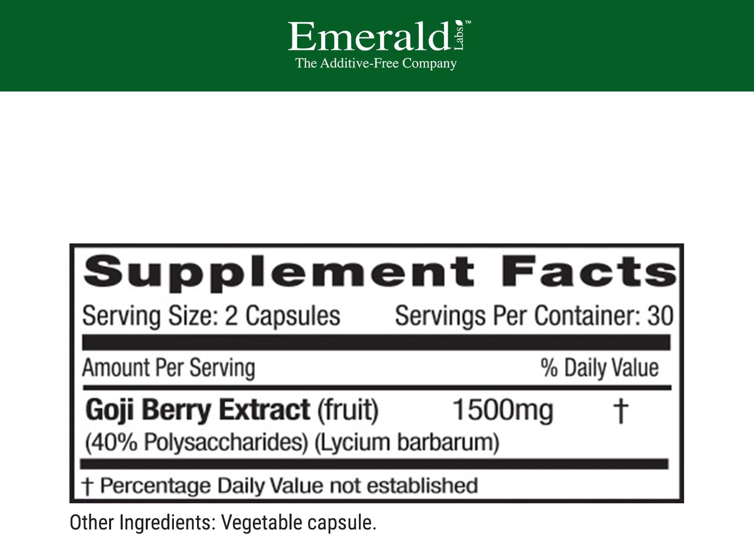Emerald Labs Goji Berry - Dietary Supplement With Polysaccharides Lycium Barbarum For Liver Cleanse, Energy Booster, And Immune Function - 60 Vegetable Capsules
