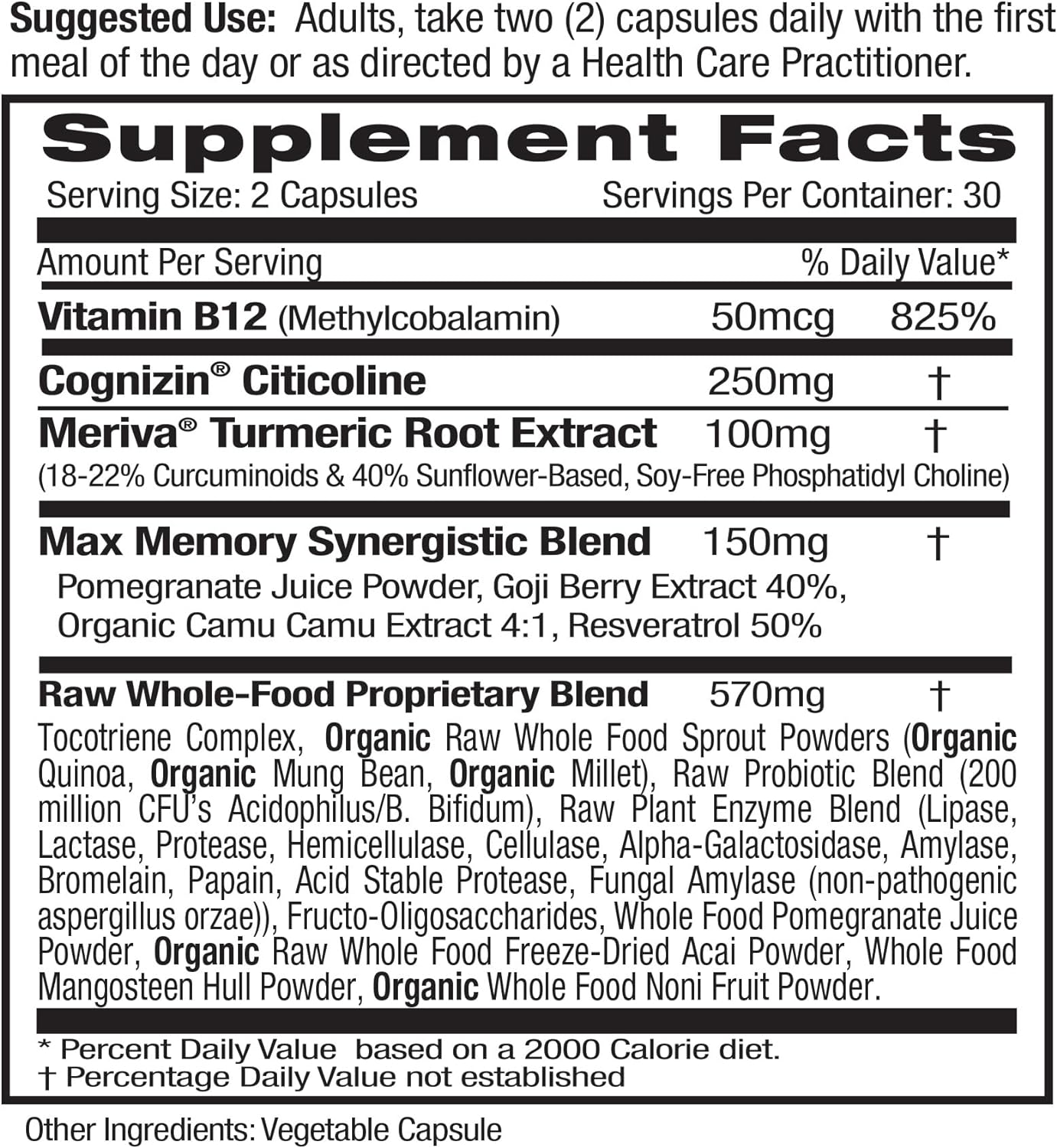Brain Health Supplement: This memory supplement is crafted with vitamin B12 and Cognizin Citicoline to support brain oxygen levels, circulation, and cell health10Turmeric Brain Support: Memory Health features Meriva Turmeric, known for supporting brain health with its blend of curcuminoids and phosphatidyl choline10Energy & Focus: Designed to maintain focus and energy, our brain support supplement fosters a positive outlook10Wholesome Ingredients: Emerald Labs' brain and memory capsules are gluten-free, made with vegetable capsules, and include a whole-food proprietary blend for optimal absorption10Additive-Free Supplements: Emerald Labs uses high-quality, doctor-formulated, superior nutrient forms, manufactured without the use of additives1010