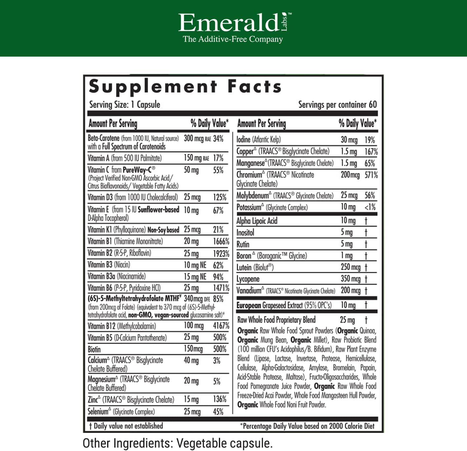 Additive-Free Supplements: Emerald Labs uses high-quality, doctor-formulated, superior nutrient forms, manufactured without the use of additives