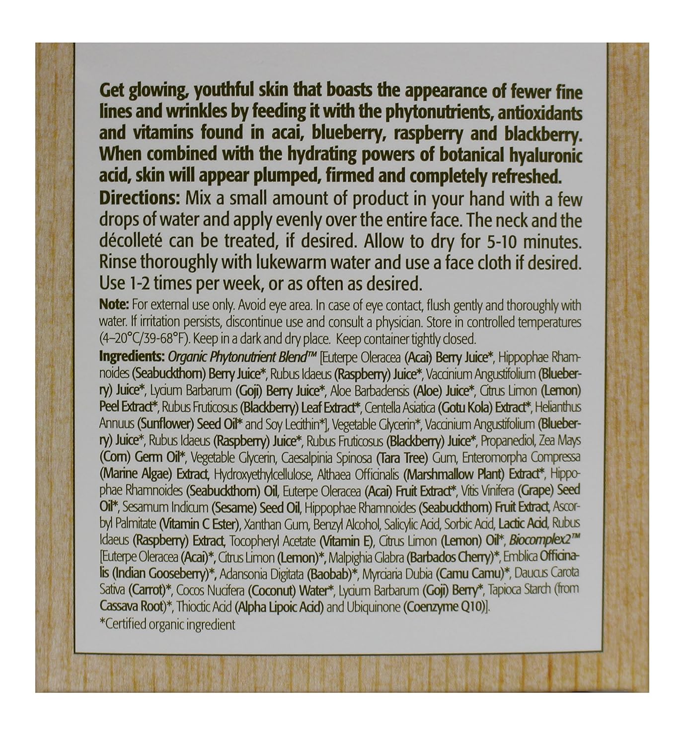 This mask unique combination of Acai, Blueberry, raspberry and blackberry feeds your skin and keeps it looking healthy