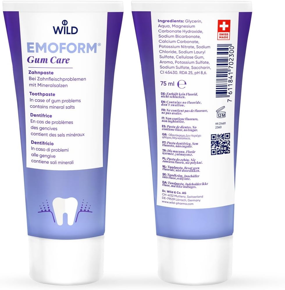 Emoform Gum Care Toothpaste, In Case Of Gum Problems, With Mineral Salts, Strengthens And Regenerates The Gums, Inhibits Pain Sensitivity, Without Fluoride