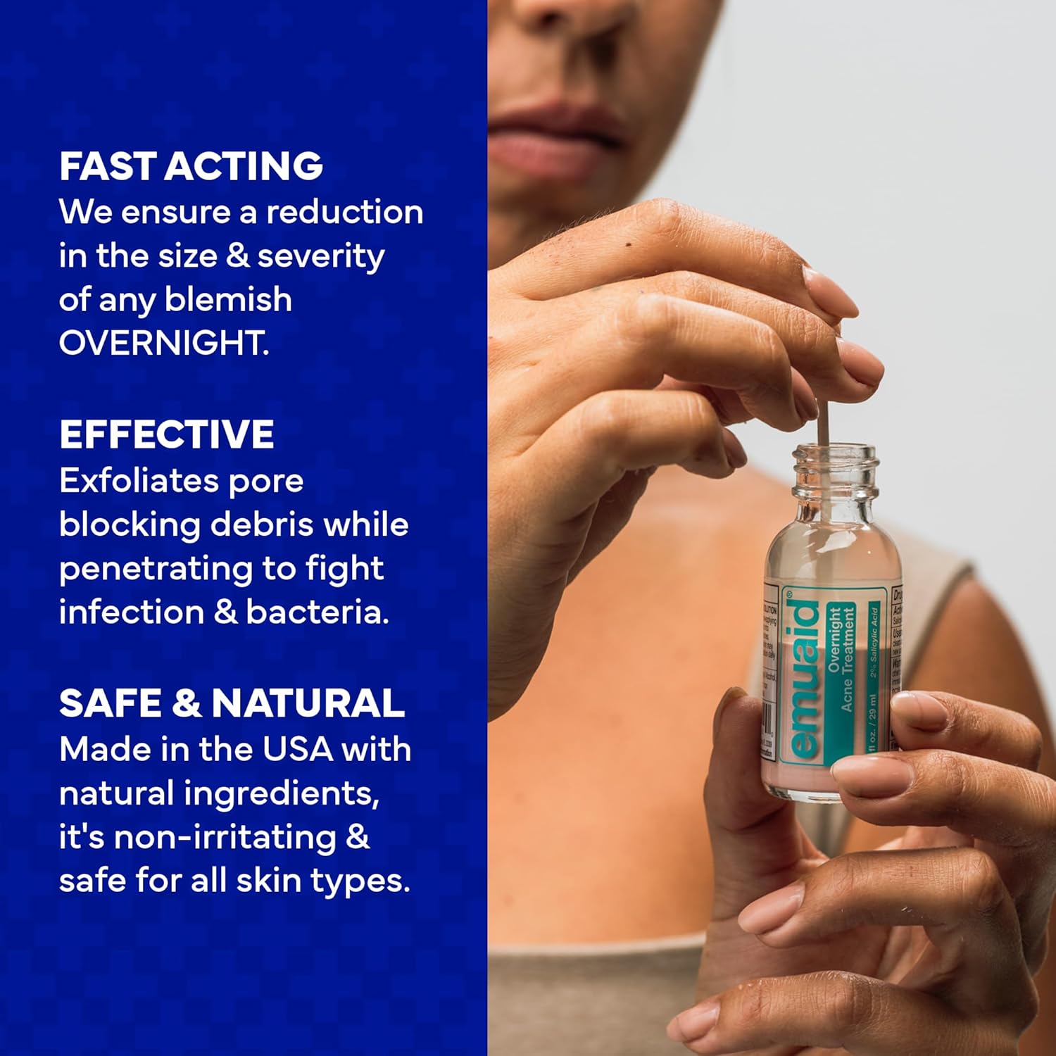 Emuaid Overnight Acne Treatment, Gentle Fast-Acting Solution With Salicylic Acid For Adults And Teens, Clears Stubborn Pimples, Cystic Acne, Blackheads, Rosacea, And Hormonal Breakouts, 1Oz