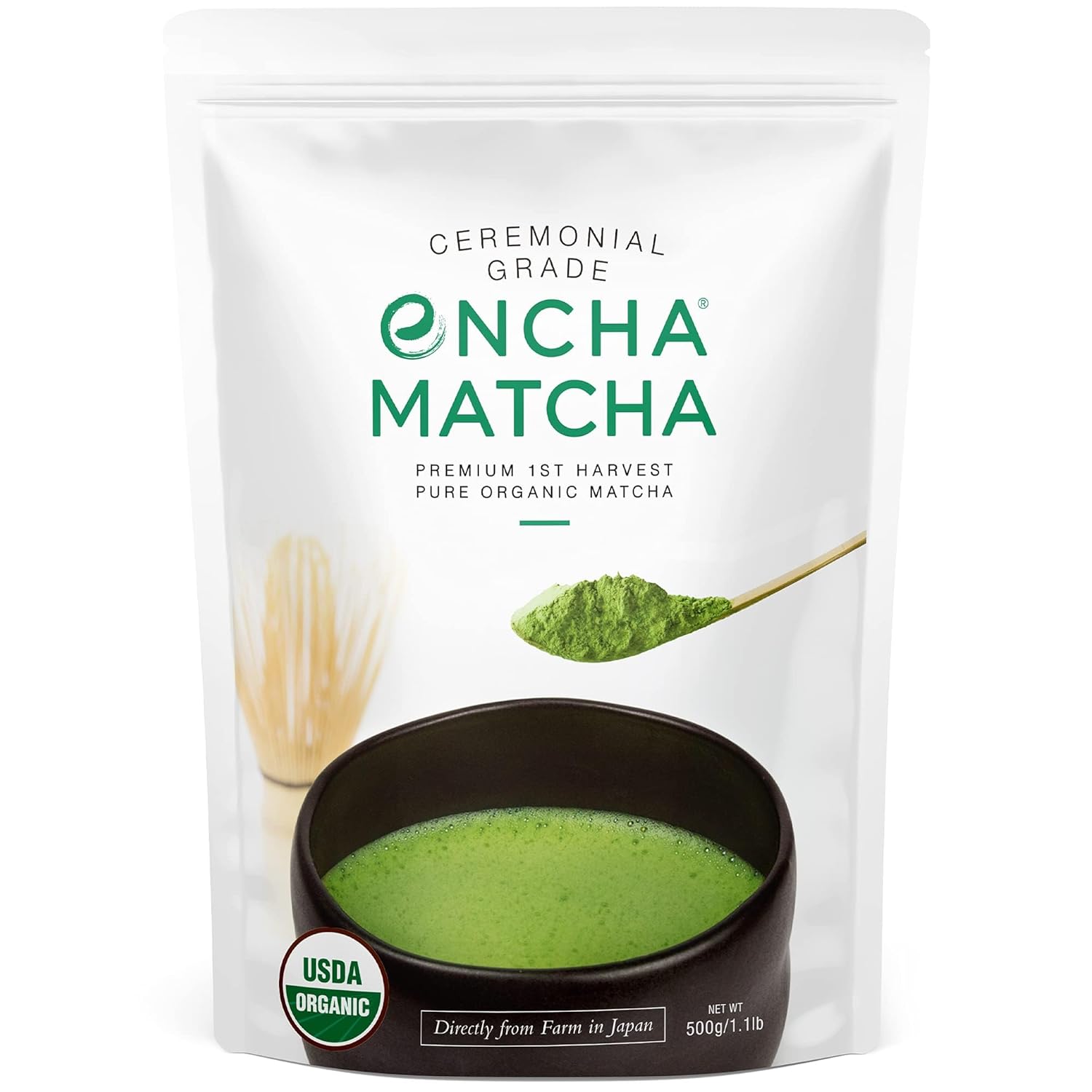 Encha Ceremonial Grade Organic Matcha Powder - First Harvest Organic Japanese Matcha Green Tea Powder, From Uji, Japan (Organic Ceremonial, 1 Pound (Pack Of 1))