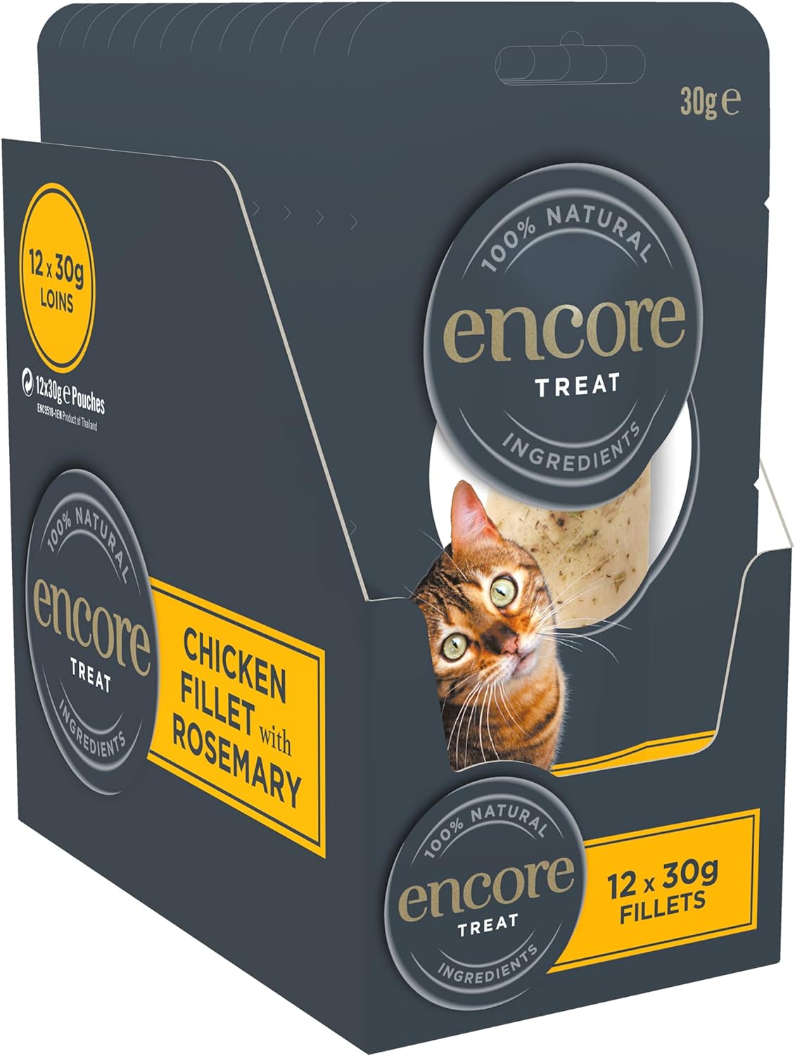 Encore 100% Natural Cat Treats, Chicken Fillet With Rosemary Loin Cat Snack, 12X 30G PouchEnc9518-1En