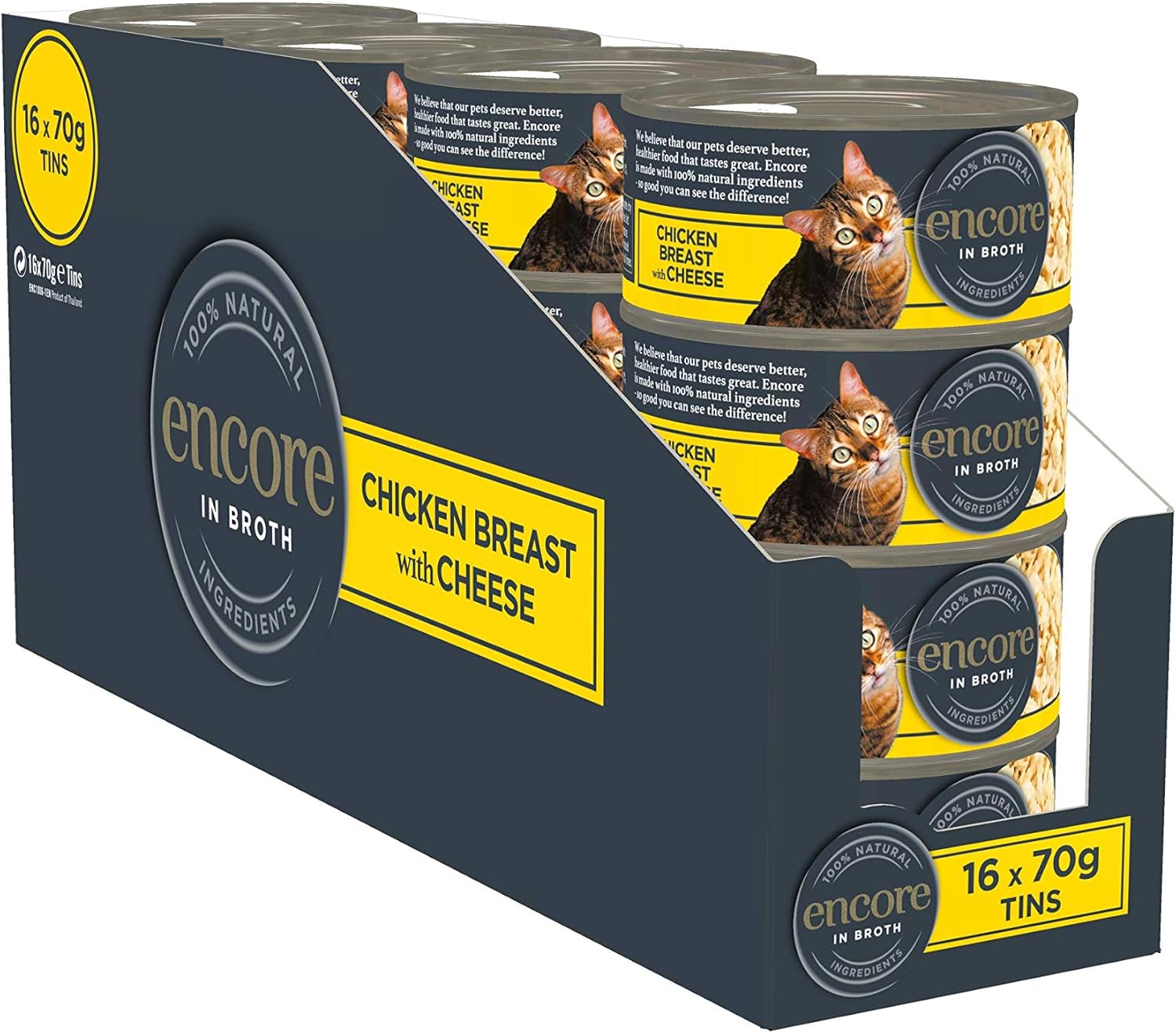 Encore 100% Natural Wet Cat Food, Chicken Breast With Cheese In 70 G Tins (Pack Of 16)Enc4005
