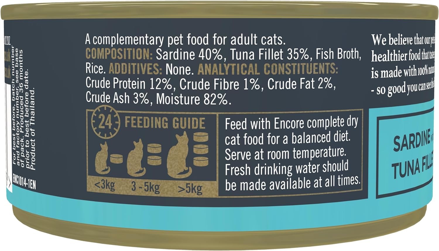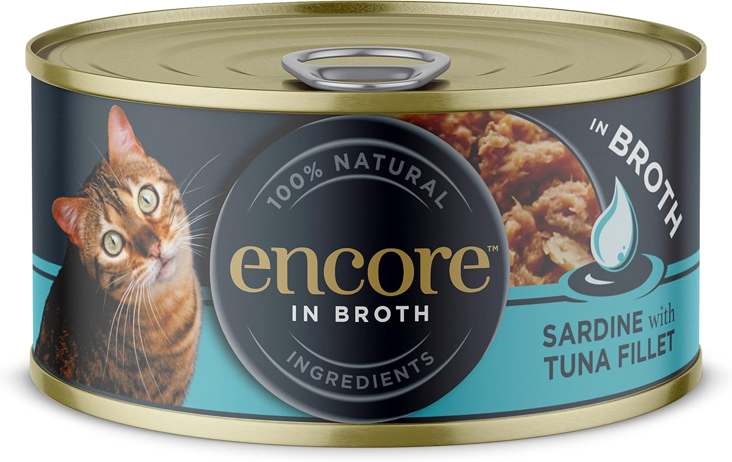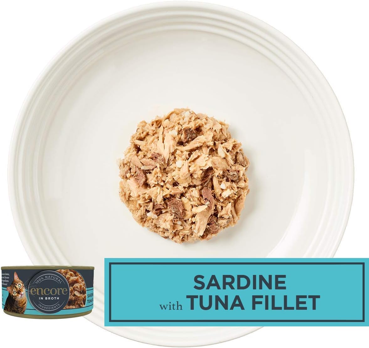 Encore 100% Natural Wet Cat Food, Sardine With Tuna Fillet In Broth, 70G (Pack Of 16)Enc4606Ml