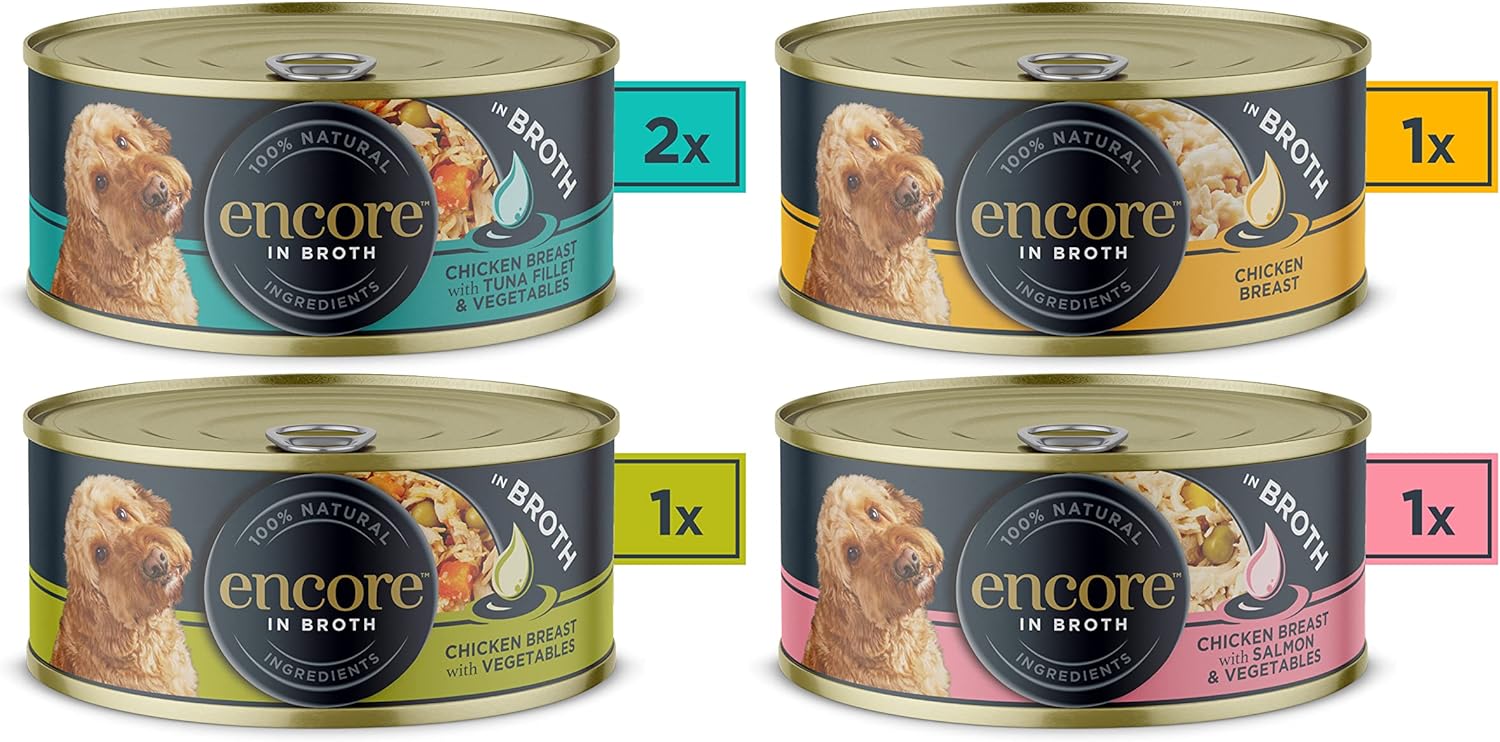 Encore 100 Percent Natural Adult Wet Dog Food, Chicken And Fish Selection Multipack In Broth 156G Tin (5 X 156G Tins)107780203