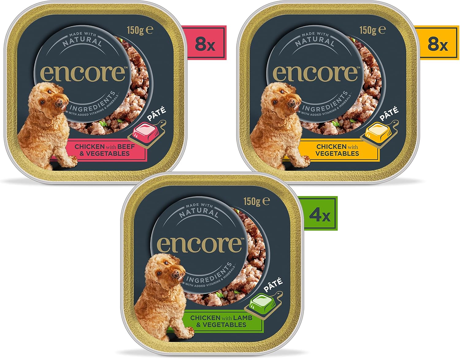 Encore Complete Wet Dog Food, Chicken, Lamb, Beef Pate Selection In 150G Trays (Pack Of 20 Trays)