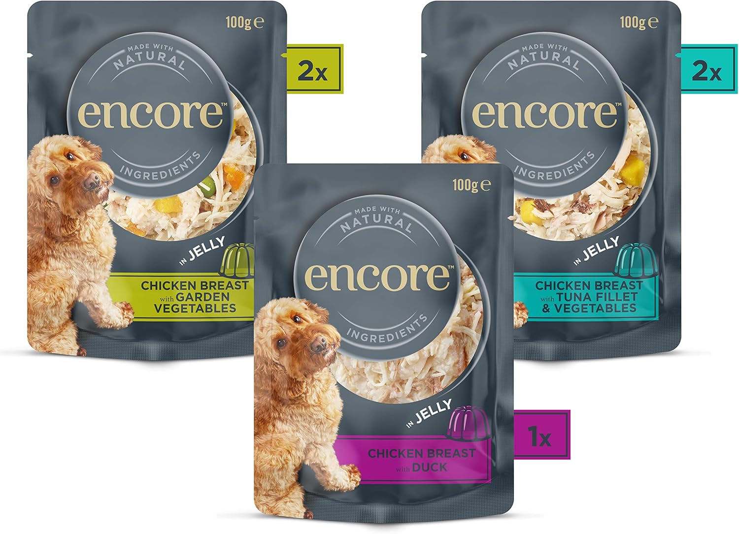 Encore Natural Wet Dog Food Pouches Finest Chicken Selection In Jelly, 5X100G Pouches107780457