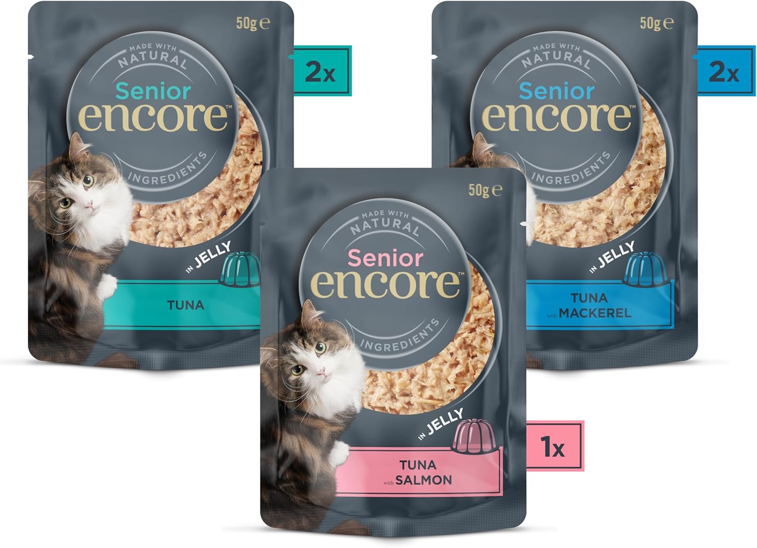 Encore Natural Wet Senior Cat Food, Tuna With Fish Multipack Selection In Jelly 50G Pouch (5X50G)