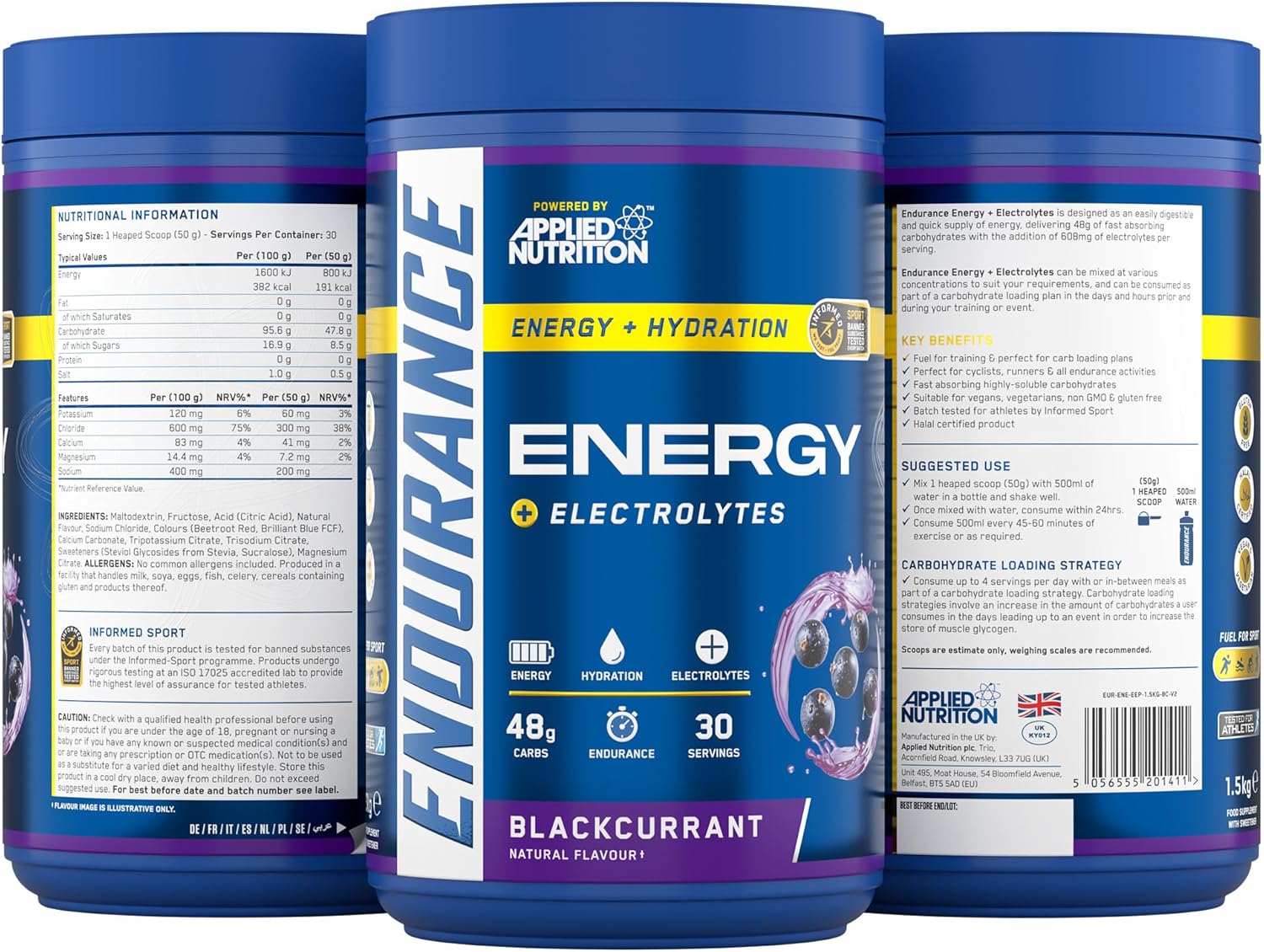 Endurance Energy Drink Powder High In Carbohydrates And Electrolytes Quick Energy For Performance Sports (1.5Kg - 30 Servings) (Blackcurrant)