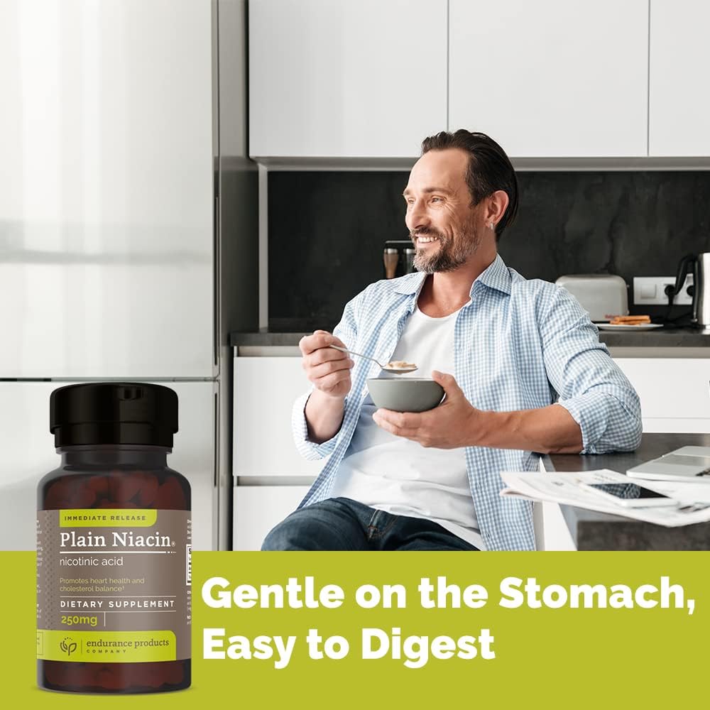 Endurance Products Plain Niacin - 250Mg Immediate Release Niacin With Flush (Vitamin B-3) - Nicotinic Acid 100 Tablets - Non-Gmo, Vegan, Gluten Free Company