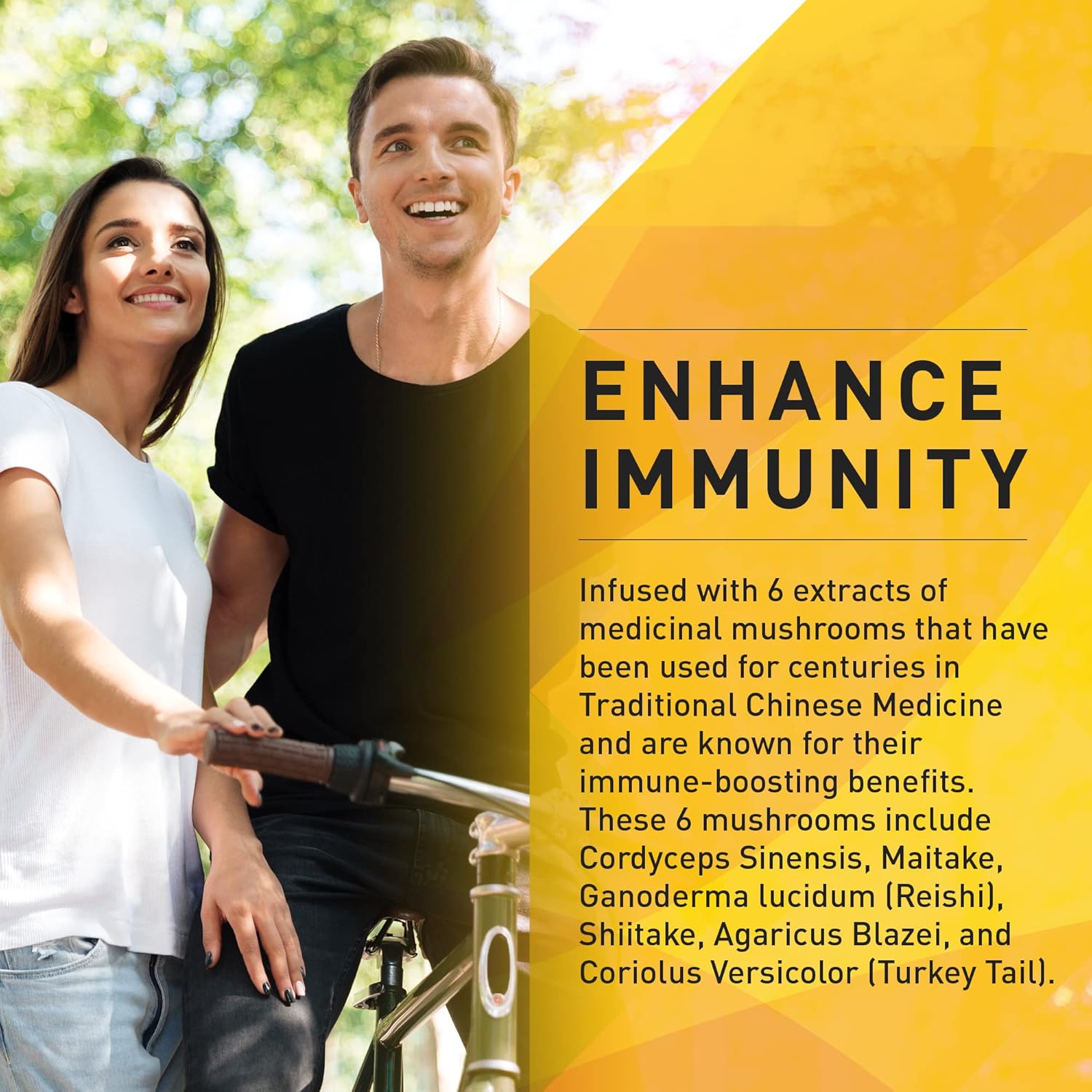 INFUSED WITH 6 IMMUNE-BOOSTING MUSHROOMS: A powerful blend of six organic mushrooms that support immunity, including Cordyceps, Coriolus Versicolor (Turkey Tail), Maitake, Agaricus Blazei, Reishi, and Shitake