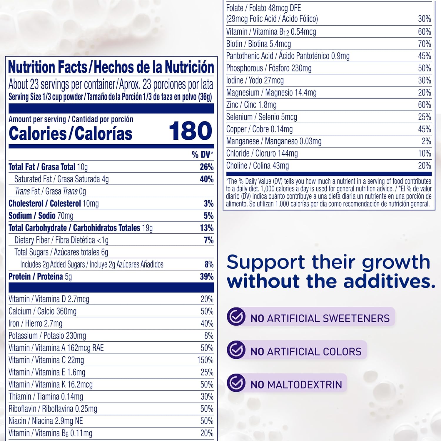 FOR CHILDREN AGES 1plus: Contains 26 milligrams of brain nourishing omega3 DHA to assure brain support and rapid development10EASYTODIGEST: Enfagrow Premium Gentlease formula contains proteins that are partially brokendown that are easy to digest to ease fussiness, gas and crying10PROPRIETARY TRIPLE HEALTH GUARD BLEND: Contains omega3 DHA to provide brain support, baby probiotics and vitamins for immune support, and 22 total nutrients for growth10BRAIN DEVELOPMENT: Enfagrow Premium Gentlease contains expert recommended omega3 DHA and iron two building blocks of a toddler's brain10EXPERT RECOMMENDED DHA: Enfagrow Premium Gentlease has expert recommended omega3 DHA which supports brain development10Gassy toddler Enfagrow PREMIUM Gentlease Toddler Nutritional Drink is designed for sensitive, stillgrowing bellies Enfagrow Premium Gentlease Toddler Nutritional Milk Drink is a nutritional toddler drink made with real milk and fortified with vitamins. Enfagrow is for growing children ages 1 year and up. The transition from baby formula or breast milk to cow's milk can lead to an 80% drop in brain nourishing Omega3 DHA consumption. And 85% of brain growth happens in your baby's first three years. That's why it's important to provide brain support with Enfagrow Gentlease Toddler Nutritional Milk Drink. It contains 26mg of omega DHA per serving, Enfamil is the pediatrician recommended brand of Infant Formula QuintilesIMS, using the ProVoice Survey fielded from October 1, 2016 to September 30, 2017. Not made with genetically modified ingredients, but trace amounts of genetically engineered materials may be present in the product from manufacturing environments and process sources