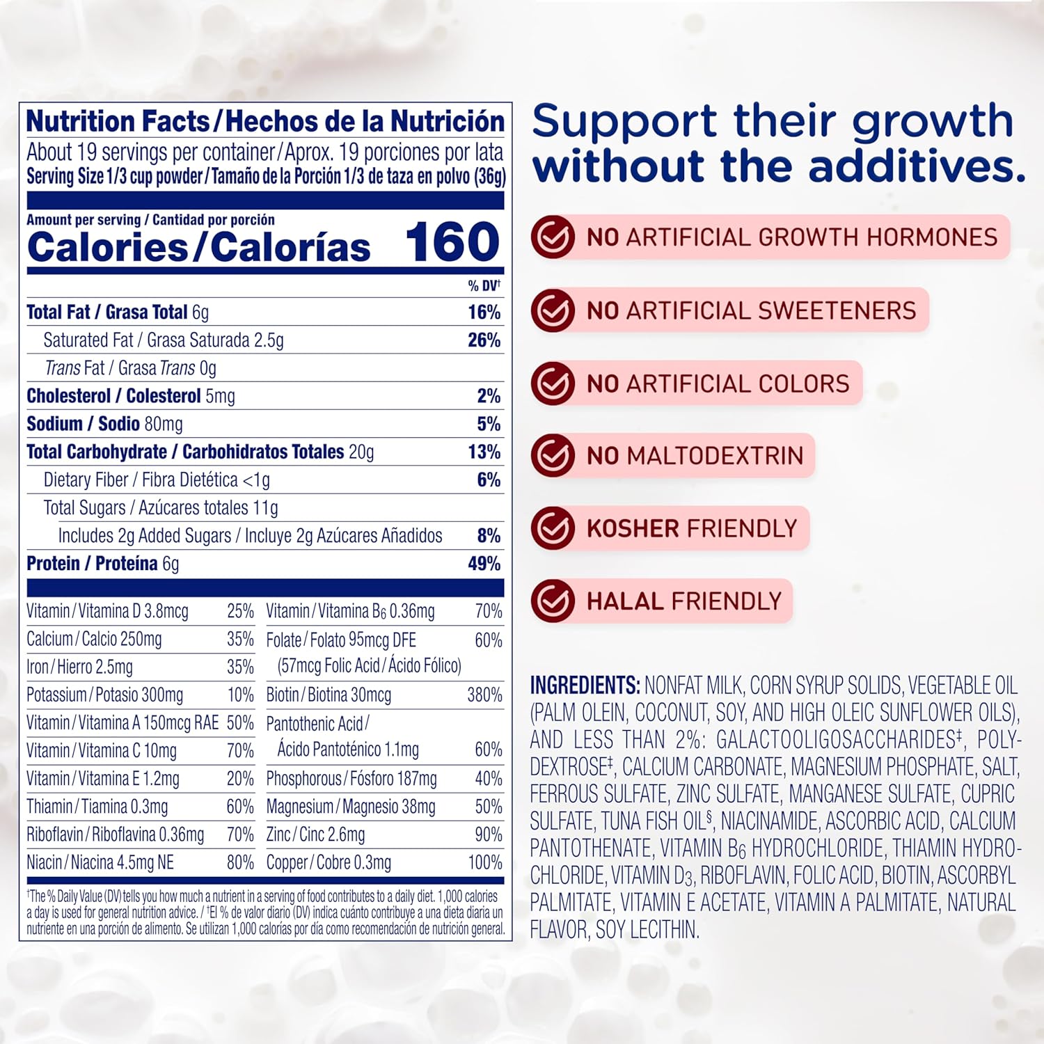 PROPRIETARY TRIPLE HEALTH GUARD BLEND: Contains omega-3 DHA to provide brain support, baby probiotics and vitamins for immune support, and 22 total nutrients for growth