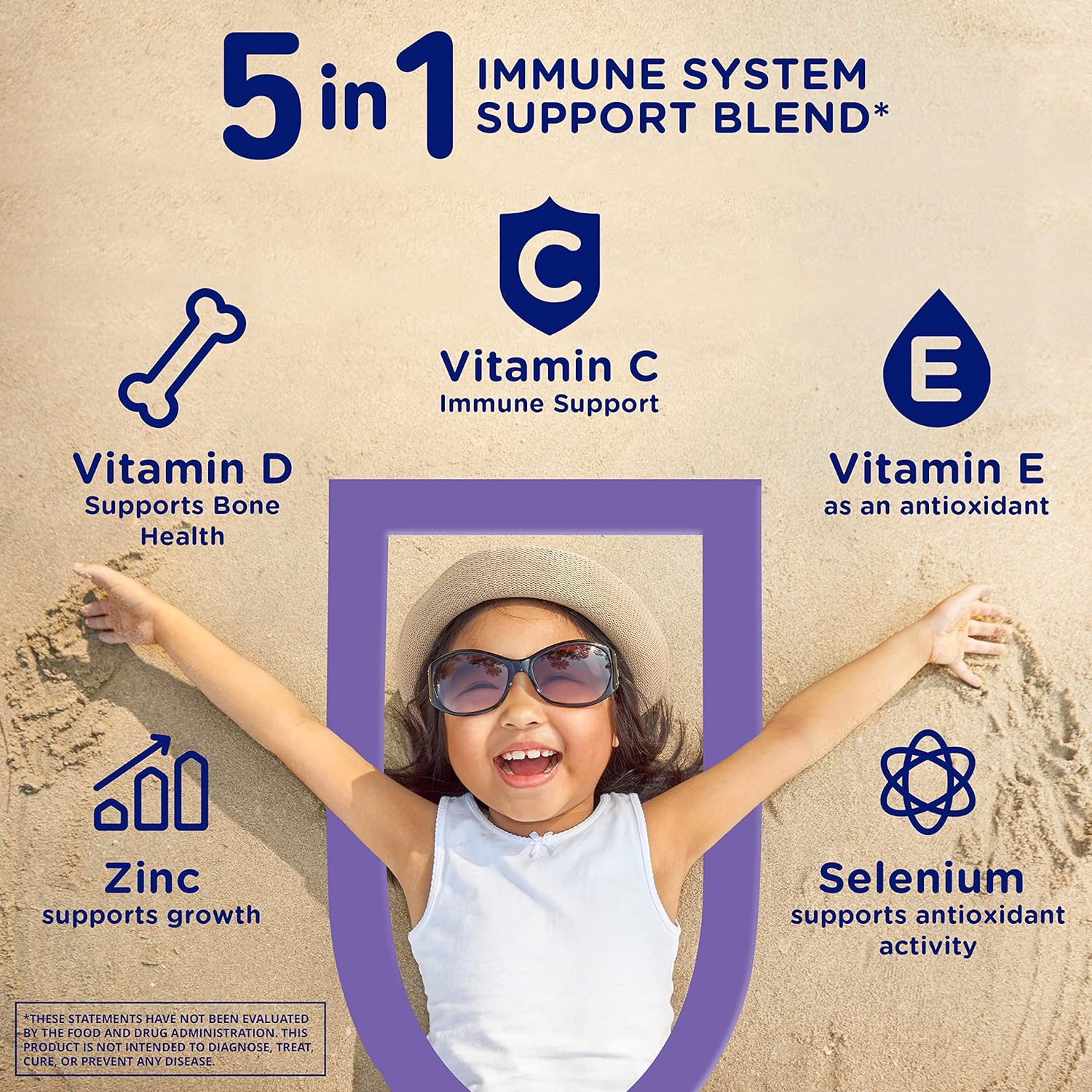 BULLET POINTS : 1 > 5-in-1 IMMUNE SYSTEM SUPPORT BLEND: Vitamins C for immune support, Vitamin D to support bone health & Vitamin E as an antioxidant, Zinc to support growth and Selenium to support antioxidant activity