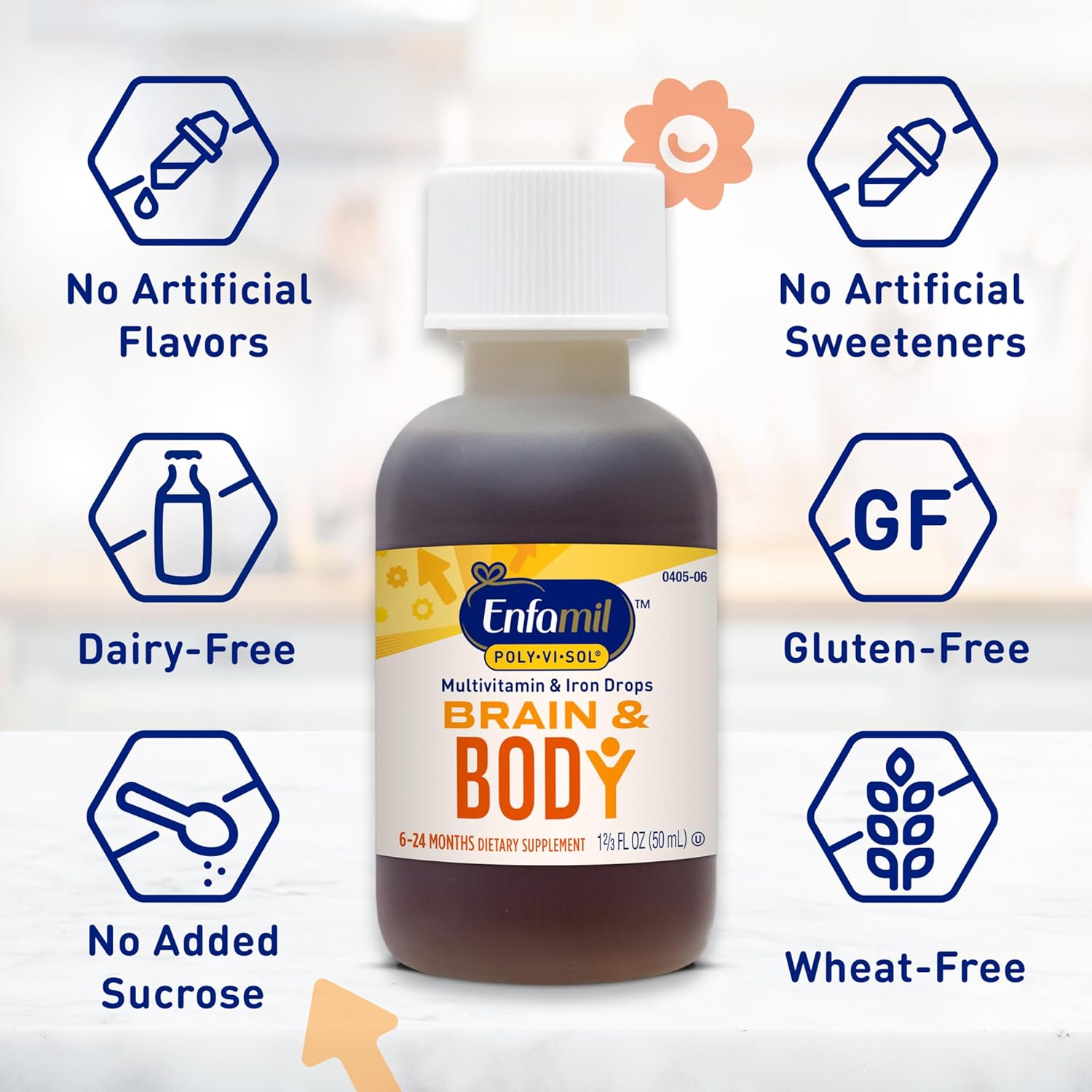 Enfamil Baby Vitamin Poly-Vi-Sol with Iron Multivitamin Supplement Drops for Infants and Toddlers, 50 mL dropper Bottle, Pack of 3