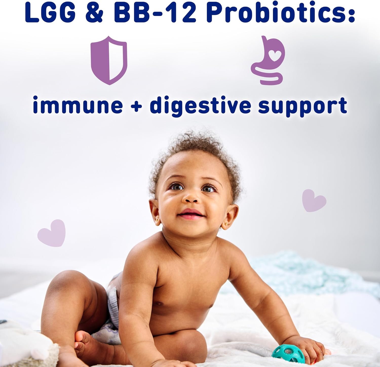 Enfamil Breastfed Infant Probiotics & Vitamin D Dual Probiotics, 8.7mLWHAT ARE PROBOITICS: Probiotics are the 'good' bacteria that help your little one digest their food, absorb vitamins and develop their intestinal and immune systemsBENEFITS: Adding probiotic supplements to milk or foods in a little one’s routine can help support their gut and immune systems which are important for healthy developmentHELPS EASE COLIC, FUSSINESS AND CRYING: Our baby probiotic blend contains BB-12, a beneficial bacteria shown to help ease colic and its unpleasant indicationsIMMUNE SUPPORT: Our unique dual probiotic blend contains BB-12 and LGG cultures to help support your little one’s immune system
