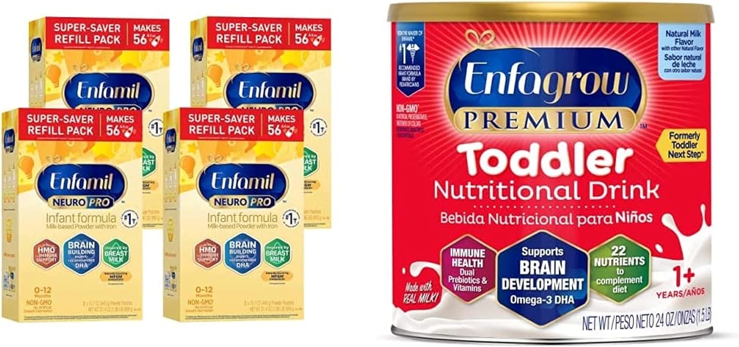 Enfamil & Enfagrow Bundle - Neuropro Baby Formula Refill Box 31.4 Oz (Pack Of 4) And Enfagrow Toddler Nutritional Drink 24 Oz. Powder Can