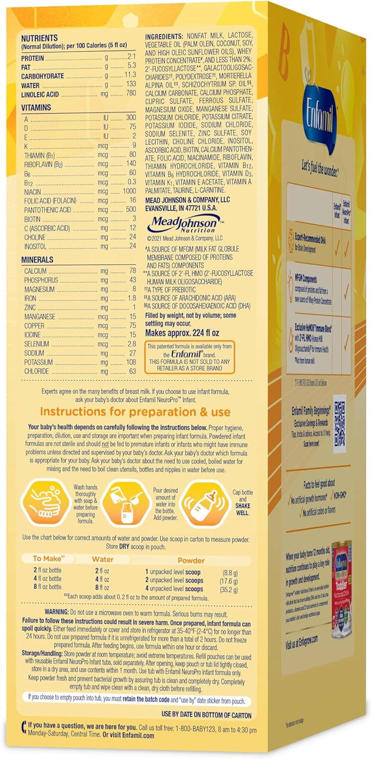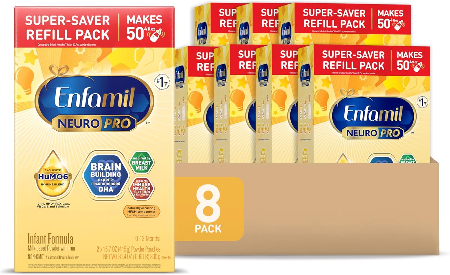 Enfamil NeuroPro Baby Formula, Infant Formula Nutrition, Triple Prebiotic Immune Blend, 2'FL HMO, & Expert-Recommended Omega-3 DHA, Perfect Choice for Baby Milk, Non-GMO, Refill Box, 31.4 Ounces (Pack of 8)
