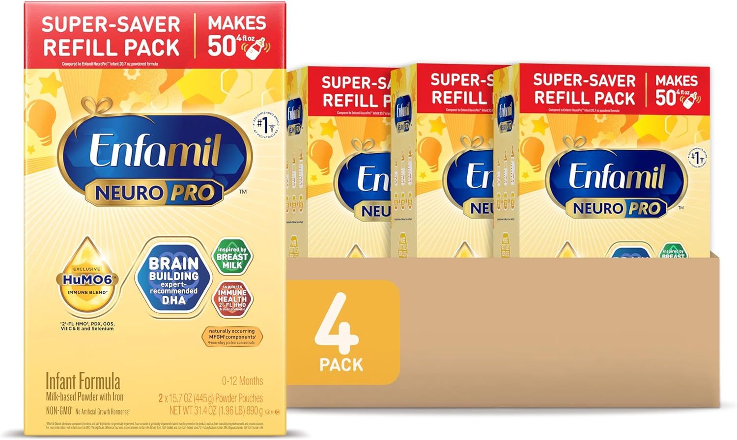 Enfamil NeuroPro Baby Formula, MFGM* 5-Year Benefit, Expert-Recommended Brain-Building Omega-3 DHA, Exclusive Immune Supporting HuMO6 Blend, Infant Formula Powder, Baby Milk, 31.4 Oz (Pack of 4)