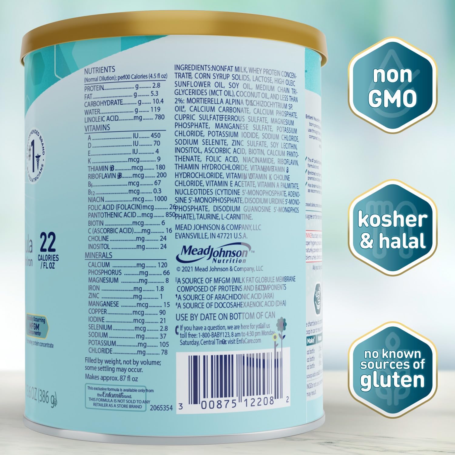 SUPPORTS IMMUNE SYSTEM: Milk-based, 22 Cal Fl Oz formula with enriched nutrition and a blend of nutrients to help support baby's immune system10PROMOTES CATCH-UP GROWTH: Clinically proven to promote catch-up growth similar to full-term breastfed infants10BLEND OF IMPORTANT NUTRIENTS: Enfamil Enfacare has a blend of vitamin D, omega-3 DHA and vitamin C to help support length gain and lean support10EXPERT RECOMMENDED DHA: Enfamil Enfacare has expert recommended DHA which provides brain-building nutrition10BRAIN-BUILDING NUTRITION: Get brain building nutrition inspired by breast milk from Enfamil10Introducing Enfamil NeuroPro EnfaCare, now formulated with MFGM that nourishes the brain first and meets the special nutritional needs of babies born prematurely or at a low birth weight. Emerging evidence from a recent clinical study showed MFGM in formula supports cognitive development similar to breast milk.* NeuroPro is the only formula that has a fat-protein blend of MFGM and DHA previously only found in breast milk.† Enfamil NeuroPro EnfaCare also has additional protein, calcium, and extra vitamins & minerals‡ to promote early growth & help your little one catch up to full-term, breastfed infants
