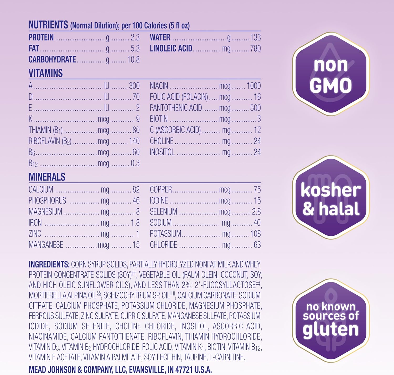 Introducing Enfamil NeuroPro Gentlease. Our trusted Gentlease formula, clinically proven to reduce fussiness, gas and crying within 24 hours, now has MFGM that nourishes the brain first. Emerging evidence from a recent clinical study showed MFGM in formula supports cognitive development similar to breast milk. NeuroPro is the only formula that has a fat-protein blend of MFGM & DHA, previously only found in breast milk. So you can get brain-building nutrition inspired by breast milk from the formula brand that's No.1 recommended by Pediatricians. It offers complete nutrition for babies through 12 months, easy-to-digest proteins and vitamins and minerals for immune health. Each packet makes an 4 fl oz bottle, perfect for feedings on the go. As measured by Bayley-III cognitive score at 12 months in a different formula with MFGM added as an ingredient. Enfamil is the No.1 pediatrician recommended brand of Infant Formula - QuintilesIMS, using the ProVoice Survey fielded from October 1, 2016 to September 30, 2017. ā In amounts supported by clinical research. Not made with genetically modified ingredients, but trace amounts of genetically engineered materials may be present in the product from manufacturing environments and process sourcesALL-IN-ONE COMFORT FOR YOUR LITTLE ONE: Enfamil NeuroPro Gentlease is thoughtfully crafted to provide all-in-one comfort, designed to ease fussiness, crying, gas, and spit-up within just 24-hours, so you and your baby can enjoy precious moments of peace NURTURING BRAIN DEVELOPMENT: Our formula has expert-recommended DHA, known to support your baby's growing brain, supporting their milestones with confidence HuMO6 GENTLE + IMMUNE BLEND§: Enfamil NeuroPro Gentlease features our exclusive HuMO6 gentle + immune blend, to support your baby's immune system, because your baby's well-being is our top priority NUTRITION DESIGNED FOR YOUR INFANT: Designed with care for babies up to 12 months, Enfamil formula includes easy-to-digest proteins, vitamins & minerals