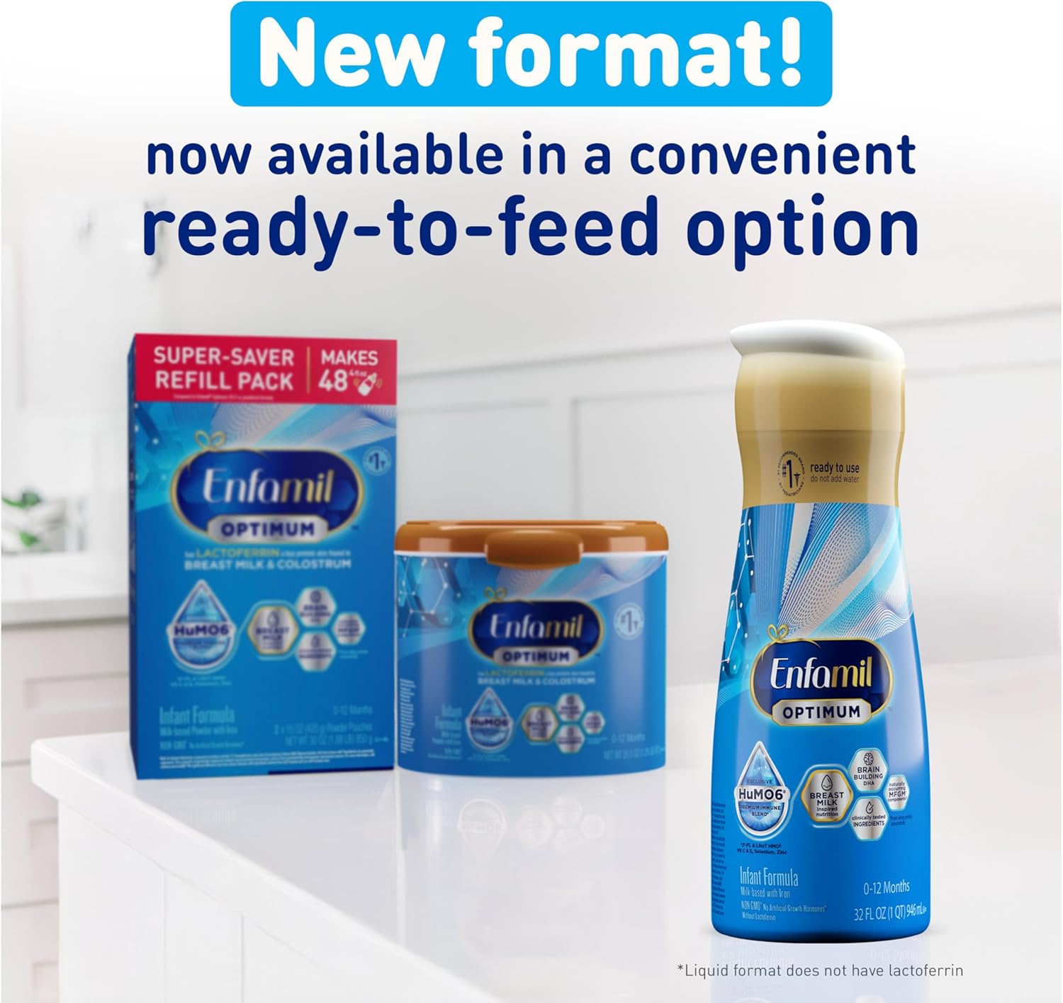 About this item NEW LOOK, SAME TRUSTED FORMULA: Enfamil Optimum, formerly Enspire Optimum, has a fresh new name and look, while offering the same great nutrition for your little one OUR CLOSEST FORMULA TO BREAST MILK: Enfamil Optimum is the first and only leading brand to have lactoferrin found in breastmilk & colostrum PERFECT FOR COMBO FEEDING: Ideal for supplementing breastfeeding, Enfamil Optimum offers essential nutrients for baby while giving parents peace of mind and convenience PREMIUM IMMUNE BLEND: Contains lactoferrin and a dual prebiotic blend (2'FL & LnNT), key ingredients clinically shown to support baby's developing immune system PEACE OF MIND: Optimum contains NO artificial growth hormones, NO artificial colors or flavors, and is NON-GMO, offering complete nutrition for babies through 12 months TRUSTED BY PARENTS & PEDIATRICIANS*: Enfamil is the #1 Trusted Infant Formula Brand By Pediatricians* & Parents and the #1 Trusted Brand for Brain-Building & Immune Support SNAP ELIGIBLE: Eligible for purchase with Supplemental Nutrition Assistance Program (SNAP) benefits, providing greater accessibility for caring caretakers SUBSCRIBE & SAVE: Opt for Subscribe and Save to enjoy extra savings, automatic deliveries and the convenience of never running out of your favorite Enfamil Product See more product details,NEW LOOK, SAME TRUSTED FORMULA: Enfamil Optimum, formerly Enspire Optimum, has a fresh new name and look, while offering the same great nutrition for your little one,OUR CLOSEST FORMULA TO BREAST MILK: Enfamil Optimum is the first and only leading brand to have lactoferrin found in breastmilk & colostrum,PERFECT FOR COMBO FEEDING: Ideal for supplementing breastfeeding, Enfamil Optimum offers essential nutrients for baby while giving parents peace of mind and convenience,PREMIUM IMMUNE BLEND: Contains lactoferrin and a dual prebiotic blend (2'FL & LnNT), key ingredients clinically shown to support baby's developing immune system,PEACE OF MIND: Optimum contains NO artificial growth hormones, NO artificial colors or flavors, and is NON-GMO, offering complete nutrition for babies through 12 months,TRUSTED BY PARENTS & PEDIATRICIANS*: Enfamil is the #1 Trusted Infant Formula Brand By Pediatricians* & Parents and the #1 Trusted Brand for Brain-Building & Immune Support,SNAP ELIGIBLE: Eligible for purchase with Supplemental Nutrition Assistance Program (SNAP) benefits, providing greater accessibility for caring caretakers,SUBSCRIBE & SAVE: Opt for Subscribe and Save to enjoy extra savings, automatic deliveries and the convenience of never running out of your favorite Enfamil Product