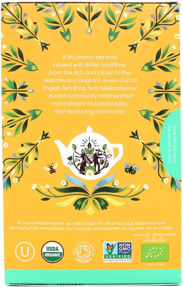 Product Description English Tea Shop Premium Holiday Collection Green Gift Tin | 72 Tea Bag Sachets | 108g. Ingredients Gingerbread Treat - Organic Black Tea with Cinnamon, Ginger, Apple and Cardamom. Ingredients: Organic black tea (53%), organic cinnamon (16%), organic ginger (15%), organic apple (6%), organic cardamom (5%), natural flavourings (5%). "Ghostly Green - Organic Green Tea with Cinnamon, Ginger, Peppermint and Rose Petals. Ingredients: Organic green tea (73%), organic cinnamon pieces (12%), organic ginger pieces (5%), natural flavouring (5%), organic peppermint leaves (4%), organic rose petals (1%). " White Wonderland - Organic White Tea with Cinnamon, Cocoa, Peppermint, Licorice and Chamomile. Ingredients: Organic white tea (75%), natural flavourings (5%), organic cinnamon (4%), organic cocoa (4%), organic peppermint leaves (4%), organic licorice (4%), organic chamomile (4%) "Contains licorice - people suffering from hypertension should avoid excessive consumption". Festive Spice - Organic Black Tea with Cinnamon, Orange, Ginger, Cardamom, Cloves, Nutmeg and Pepper. Ingredients: Organic black tea (74%), natural flavourings (5%), organic cinnamon (4.5%), organic orange peels (4%), organic ginger (2.5%), organic cardamom (2.5%), organic cloves (2.5%), organic nutmeg (2.5%), organic pepper (2.5%). Winter Warmer - Organic Rooibos Herbal Tea with Ginger, Cocoa, Star Anise and Mace. Ingredients: Organic rooibos (60.5%), organic ginger pieces (15%), organic cocoa (10.5%), organic star anise (5%), organic mace (4%) natural flavourings (5%). "Super Star Anise - Organic Black Tea with Ginger, Cloves and Star Anise. Ingredients: Organic black tea (83%), organic ginger (6%), natural flavourings (5%), organic cloves (4%), organic star anise (2%)." Tropical Lemongrass - Organic Lemongrass Herbal Tea with Peppermint, Hibiscus, Rosehip, Chamomile and Apple. Ingredients: Organic lemongrass (24%), organic peppermint leaves (20%), organic hibiscus (20%), organic rosehips (11%),organic chamomile (10%), organic apple (10%), natural flavourings (5%). Happy Holiday - Organic Green Tea with Cinnamon, Pomegranate, Ginger, Cardamom, Cloves, Nutmeg and Pepper. Ingredients: Organic green tea (83%), natural flavourings (5%), organic cinnamon (2.5%), organic pomegranate (2%), organic ginger (1.5%), organic cardamom (1.5%), organic cloves (1.5%), organic nutmeg (1.5%), organic pepper (1.5%). "Post-party Refresh - Organic Green Tea with Garcinia, Cinnamon, Ginseng and Acai Berry. Ingredients: Organic green tea (64%), organic garcinia leaves (12%), organic cinnamon (8%), organic garcinia fruits (5%), organic ginseng (5%), natural flavourings (5%), organic acai berry (1%). " P.when('A').execute(function(A) { A.on('a:expander:toggle_description:toggle:collapse', function(data) { window.scroll(0, data.expander.$expander[0].offsetTop-100); }); }); Directions Gingerbread Treat - "4-5 Minutes (100ºC)" Ghostly Green - "2-3 Minutes (80ºC)" White Wonderland - "2-3 Minutes (80ºC)" Festive Spice - "4-5 Minutes (100ºC)" Winter Warmer - "3-5 Minutes (100ºC)" Super Star Anise - "4-5 Minutes (100ºC)" Tropical Lemongrass - "2-3 Minutes (100ºC)" Happy Holiday - "2-3 Minutes (80ºC)" Post-Party Refresh - "2-3 Minutes (80ºC)" Safety Warning Contains allergens: orange, apple Manufacturer Contact Information Amazon Trading (Pvt) Ltd, 257 Siri Dhamma Mawatha, Colombo 010 See more,Premium Holiday Collection Green Gift Tin ia a selection of organic teas to warm you this holiday season,As fans of Mother Nature, they have made English Tea Shop tea bags and the inner packaging of this tin fully compostable,Tea bags are staple free, the sachets and tins are recyclable,Store in a cool, dry place