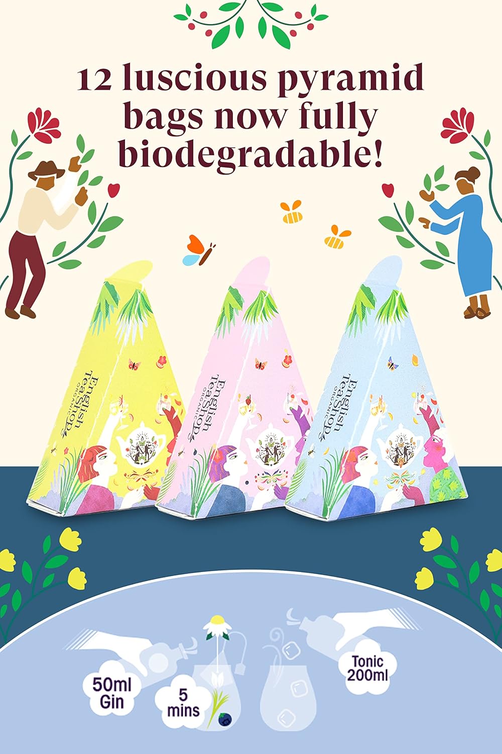 English Tea Shop Organic Gin Botanicals - 12 Pyramid Tea Bags Gift Pack With 3 Different Natural Botanical Blends