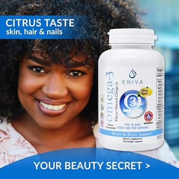 About this item HEART HEALTHY OMEGA-3 β With no Fishy Flavor. Citrus Chewable Capsule of Omega 3 fatty acids. HIGHLY REFINED AND ULTRA PURIFIED β Eniva's Omega-3 daily supplement contains highly concentrated EPA & DHA Omega-3 fatty acids derived from omega-rich natural fish oil. Our burp-less formula is purified to remove mercury and increase potency. Our doctor recommended formula is safe and effective for adults and children (4+). DOCTOR FORMULATED, DOCTOR RECOMMENDED β High potency formula Omega-3 fatty acid with triglyceride in molecular form (the form naturally found in fish) for optimal absorption by the body. Blended with a proprietary antioxident blend for total health. Contains essential fatty acids for healthy skin, hair, and nails. Contributes to vision and ocular health. ALL NATURAL OMEGA-3 β Non-GMO; Gluten-Free; Dairy-Free; No artificial colors, flavors, or preservatives. The natural citrus flavor of Eniva's proprietary fish oil blend makes it the best tasting Omega-3 supplement on the market. Easy to take gel capsules can be swallowed or chewed, with no fishy aftertaste and no fishy burps. SOURCED FROM SUSTAINABLE FISHING β Omega-rich fish oil obtained from sustainable and ethically harvested fish; Certified Sustainable by third party Friend of the Sea. See more product details,HEART HEALTHY OMEGA-3 β With no Fishy Flavor. Citrus Chewable Capsule of Omega 3 fatty acids,HIGHLY REFINED AND ULTRA PURIFIED β Eniva's Omega-3 daily supplement contains highly concentrated EPA & DHA Omega-3 fatty acids derived from omega-rich natural fish oil. Our burp-less formula is purified to remove mercury and increase potency. Our doctor recommended formula is safe and effective for adults and children (4+),DOCTOR FORMULATED, DOCTOR RECOMMENDED β High potency formula Omega-3 fatty acid with triglyceride in molecular form (the form naturally found in fish) for optimal absorption by the body. Blended with a proprietary antioxident blend for total health. Contains essential fatty acids for healthy skin, hair, and nails. Contributes to vision and ocular health,ALL NATURAL OMEGA-3 β Non-GMO; Gluten-Free; Dairy-Free; No artificial colors, flavors, or preservatives. The natural citrus flavor of Eniva's proprietary fish oil blend makes it the best tasting Omega-3 supplement on the market. Easy to take gel capsules can be swallowed or chewed, with no fishy aftertaste and no fishy burps,SOURCED FROM SUSTAINABLE FISHING β Omega-rich fish oil obtained from sustainable and ethically harvested fish; Certified Sustainable by third party Friend of the Sea