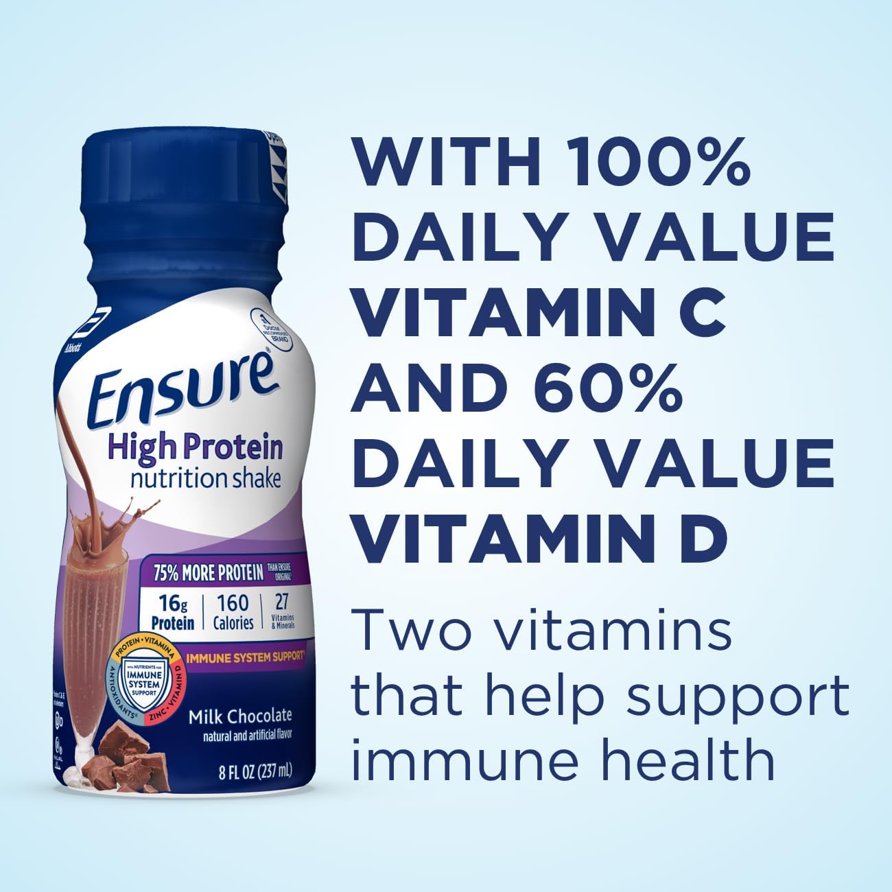 Ensure High Protein Nutritional Shake With Fiber, 16G Protein, Meal Replacement, With Nutrients To Support Immune System Health, Milk Chocolate, 8 Fl Oz, 24 Count