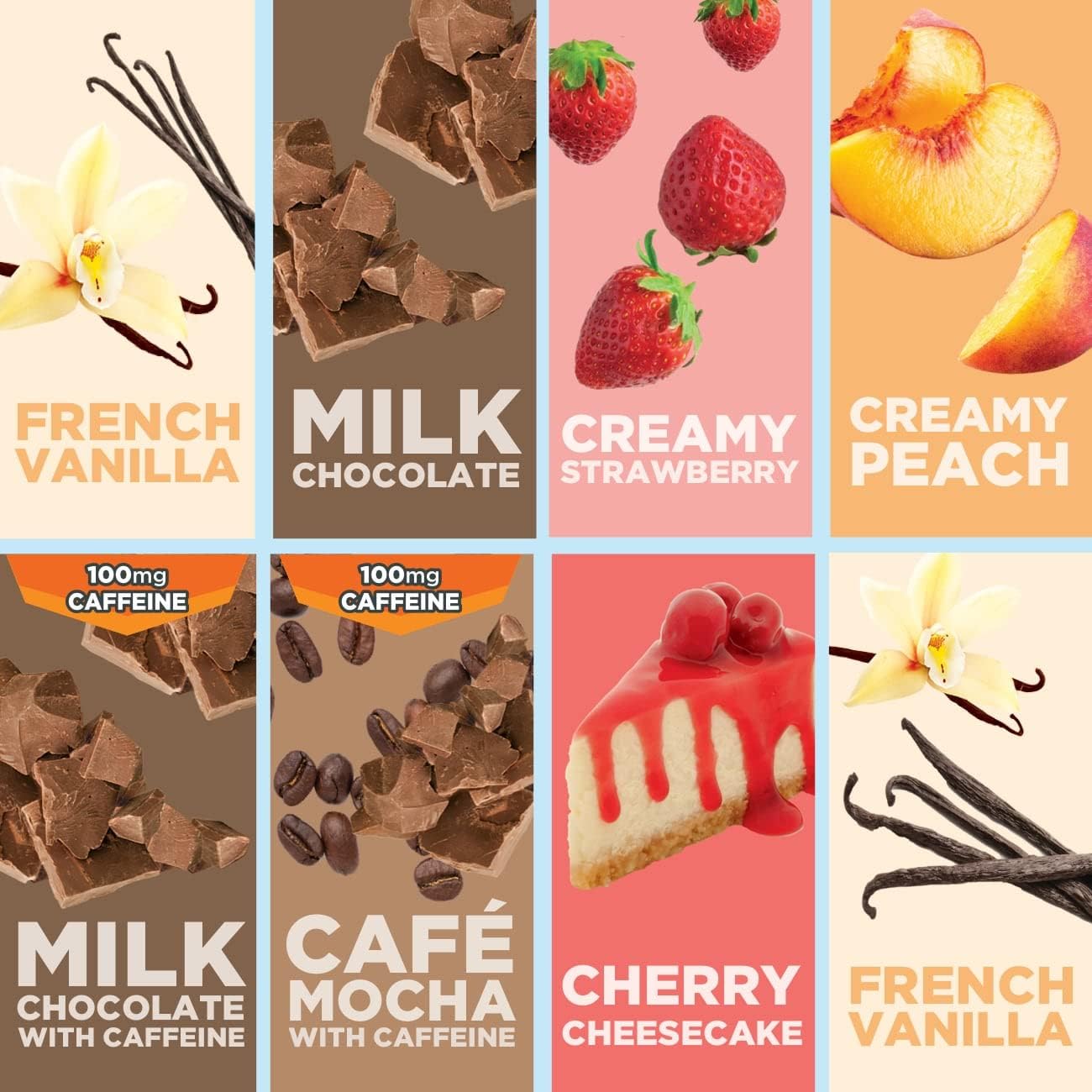 Ensure Max Protein Variety Pack Lets You Taste All 7 Delicious Flavors To Find Your Favorites: Milk Chocolate With Caffeine, Café Mocha, Milk Chocolate, Creamy Strawberry, Creamy Peach, Cherry Cheesecake, And French Vanilla. Each Flavor In This Shake Variety Pack Has 30G Of High-Quality Protein To Help Keep Muscles Strong And Satisfy Hunger. Ensure Max Protein Also Has 1G Of Sugar, 150 Calories, Plus 25 Essential Vitamins And Minerals, Including Vitamins A And D, Zinc, And Antioxidants (Vitamins C & E And Selenium) To Support Immune Health. From Ensure, The #1 Doctor-Recommended Brand.* This Product Is Gluten-Free And Suitable For Lactose Intolerance.† * Among Doctors Who Recommend Liquid Nutritional Products To Their Patients. † Not For People With Galactosemia