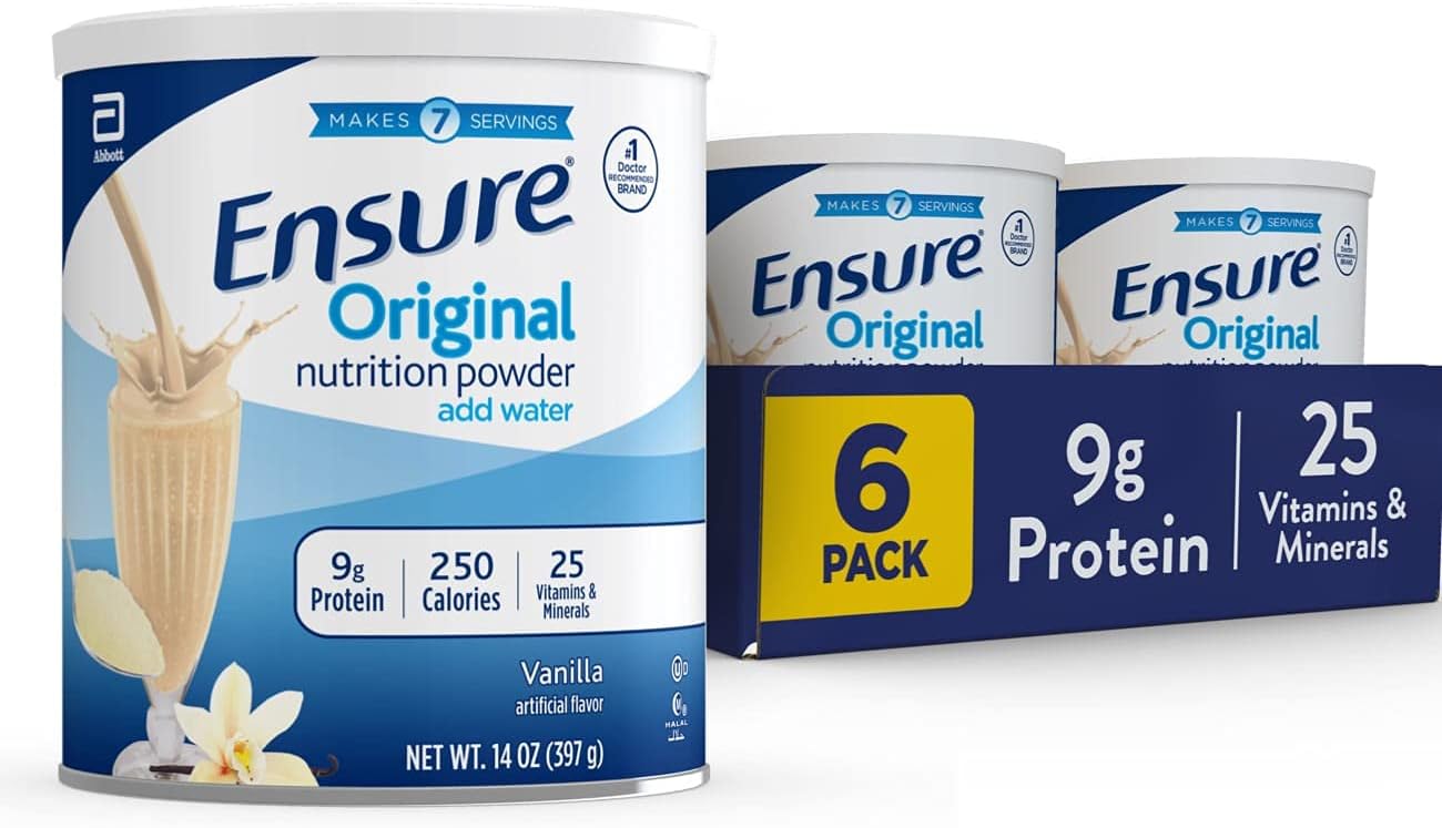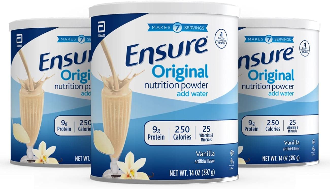 From The #1 Doctor-Recommended Brand, Ensure Original Nutrition Powder Provides Complete And Balanced Nutrition. The Convenient Powder Form Makes It Easy To Mix With Your Favorite Foods And Water, And It’S Easy To Store. Each Serving Has 9 Grams Of Protein And 26 Essential Vitamins And Minerals. *Survey Of 321 Independent-Living Adults Aged 50-80 Years Old, Who Reported A Lack Of Energy Or Appetite, Added 1-2 Servings Of Ensure Original Daily To Their Regular Diet. Participants Self-Reported Improvements In Strength, Energy, And Activity