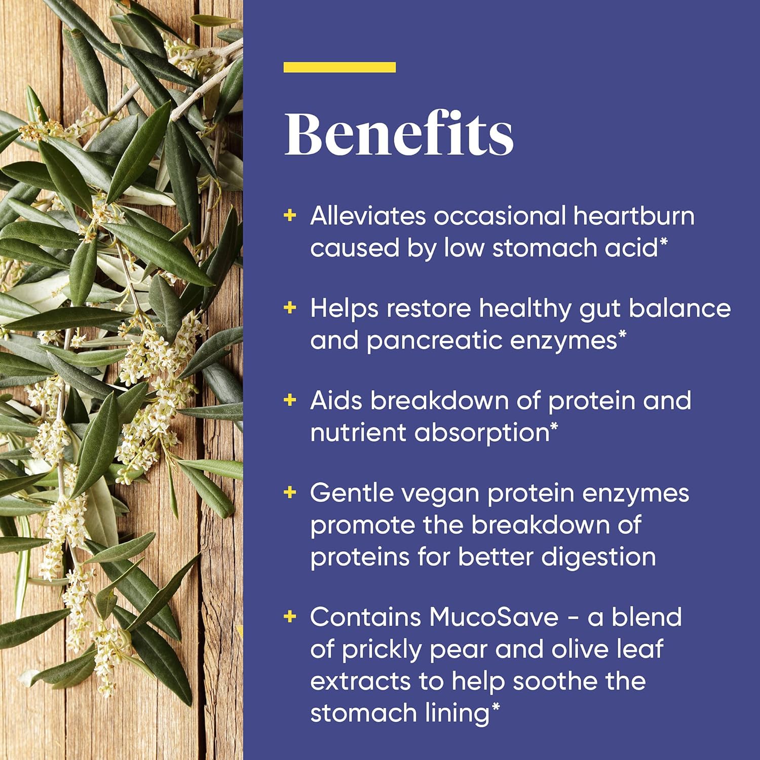 Helps soothe stomach lining: Prickly pear cactus and olive leaf extracts help support the health of the stomach lining, providing a necessary buffer for the acidity of digestion