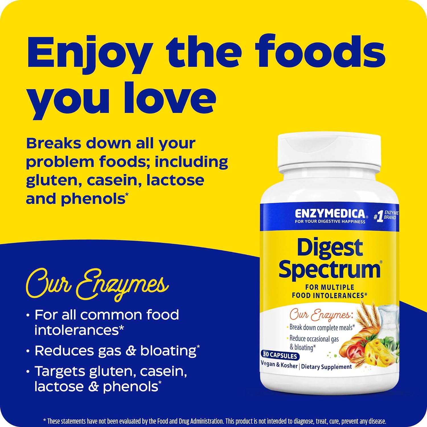 Enzymedica Digest Spectrum, Digestive Enzymes For Multiple Food Intolerances, Offers Fast-Acting Gas & Bloating Relief, 30 Count