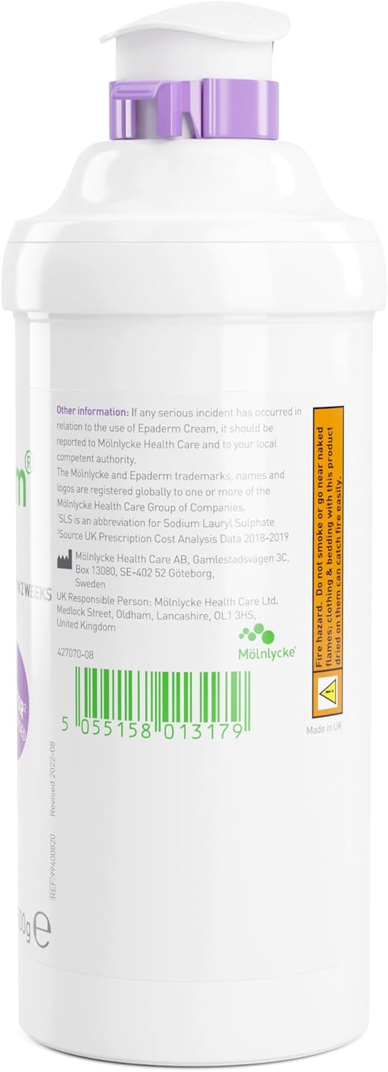 Epaderm Moisturising Cream For Dry Skin, Including Eczema And Psoriasis, 500G Pump