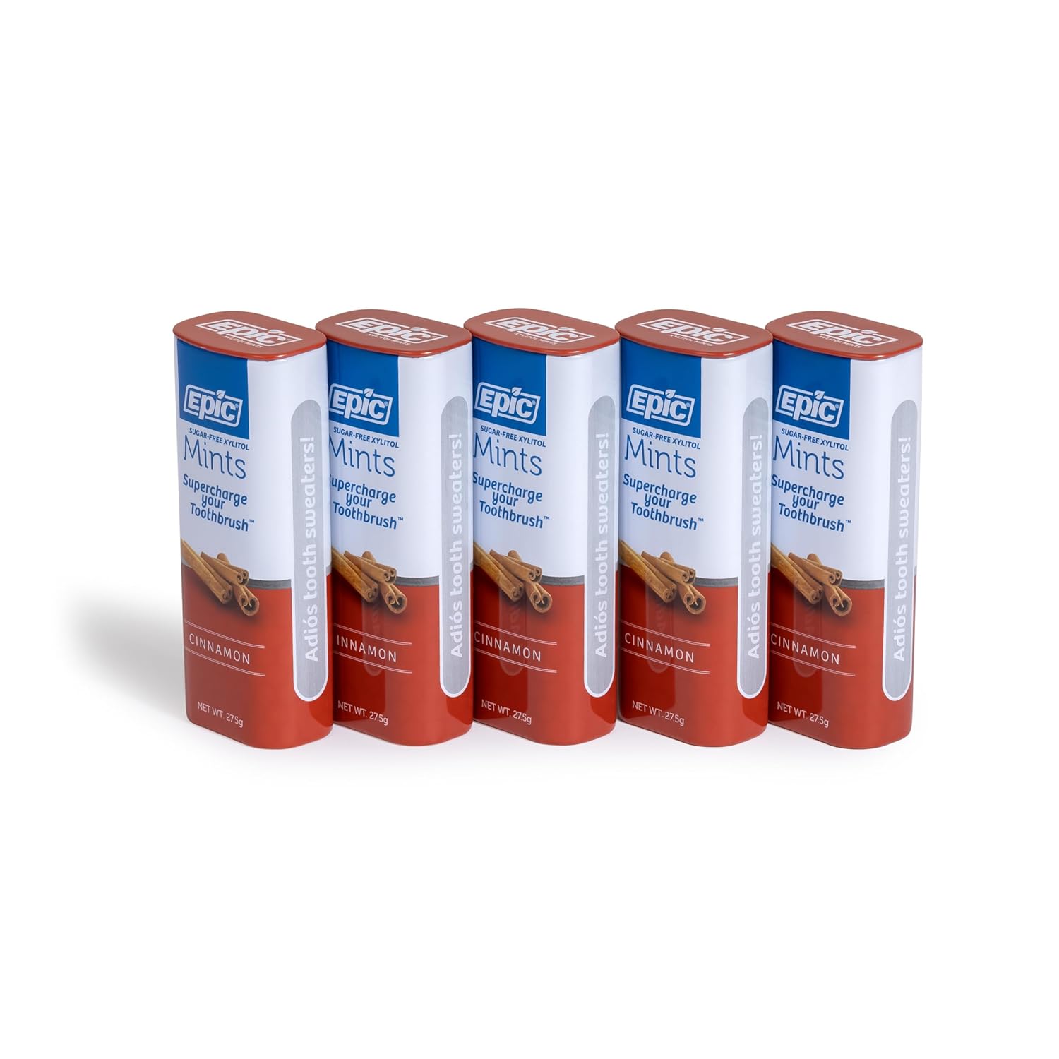 Epic Xylitol Mints - Sugar Free & Aspartame Free Mints Sweetened W/Xylitol For Dry Mouth & Gum Health (Cinnamon, 55-Piece Tin, 5 Tins)