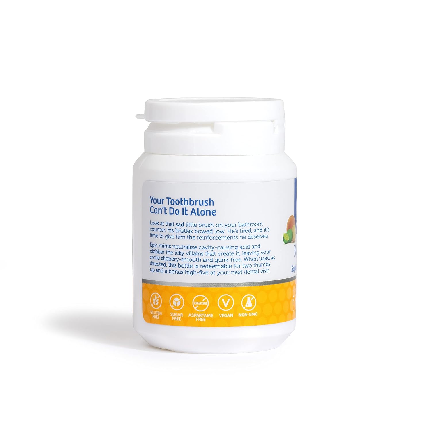 Sugarless Mints Without the Sugar Free Taste: Epic Mints are made with 100% xylitol to add a naturally sweet flavor you'll love; Sugar free and Aspartame free to keep blood sugar levels from jumpingHelps Stop Tooth Decay & Encourages Healthy Gums: These all natural Mints are Gluten-Free, Non-GMO & Vegan making them the perfect alternative to sugary products and a safe, preventative choice for kidsBanish Bad Breath & Dry Mouth: With 45% more Xylitol than other leading brands, Epic Mints deliver incredible flavor for fresh, amazing breath every time; Plus, they help reduce dry mouthTravel-Friendly, Easy to Dispense Packaging: Our 180-Piece Bottle maximizes your fresh breath and leaves plenty to share with 180 total pieces; Packed in 2 Bottle so you can take them with you on-the-go