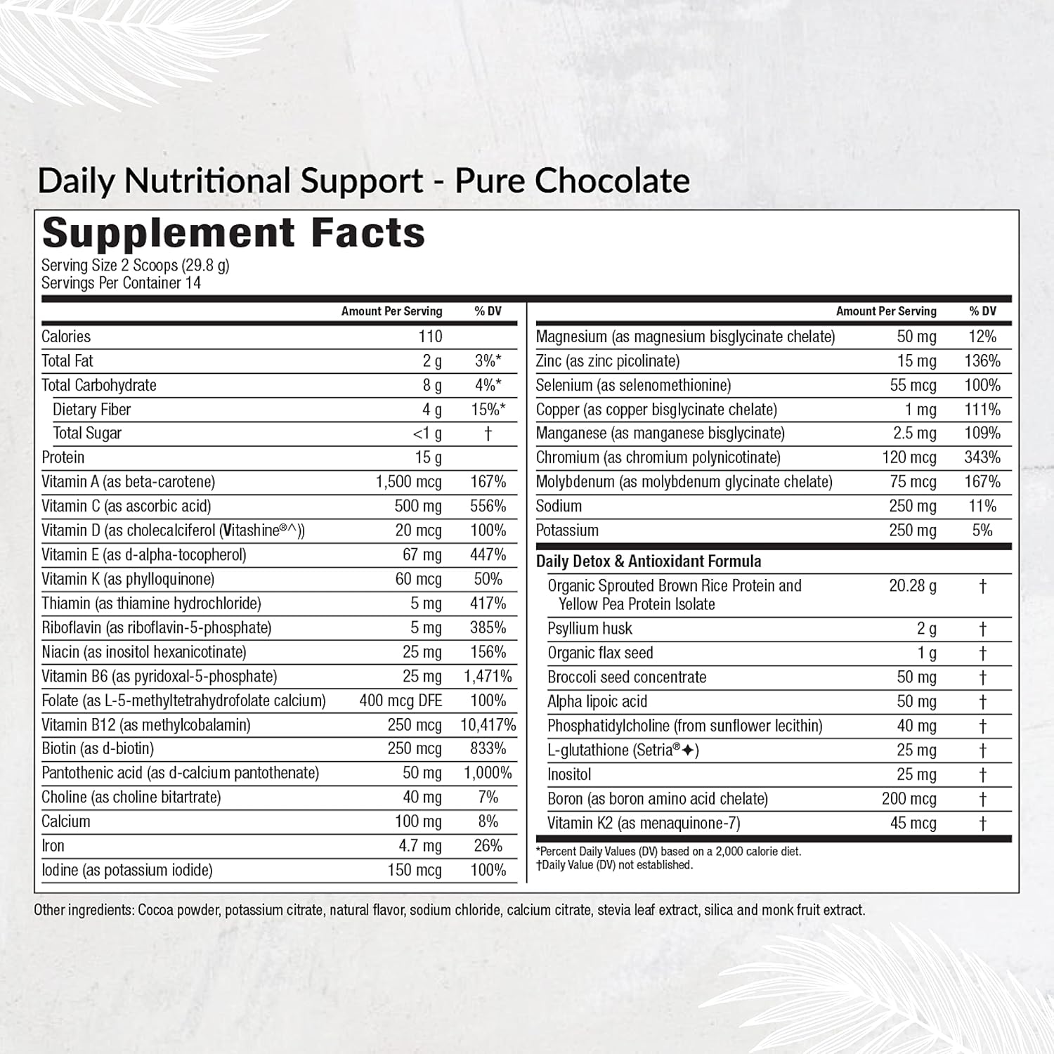 Equilife Daily Nutritional Support, All-In-One Multivitamin Meal Replacement, Pure Chocolate Flavor, 15G Plant Protein, Supports Overall Wellness Including Energy, Digestion, & Skin, 14 Servings