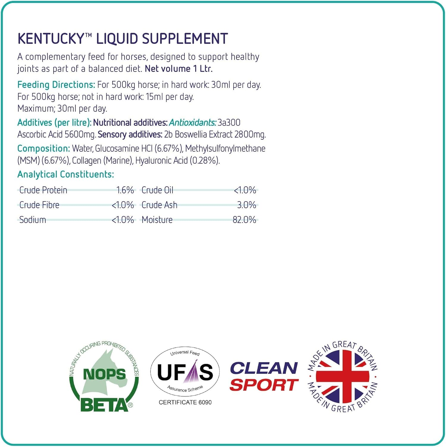 Equine America (1 Litre) Kentucky Liquid Premium Horse Supplement For Joints & Mobility. Includes Glucosamine, Collagen, And Hyaluronic Acid. Ready To Use Horse & Pony Supplement