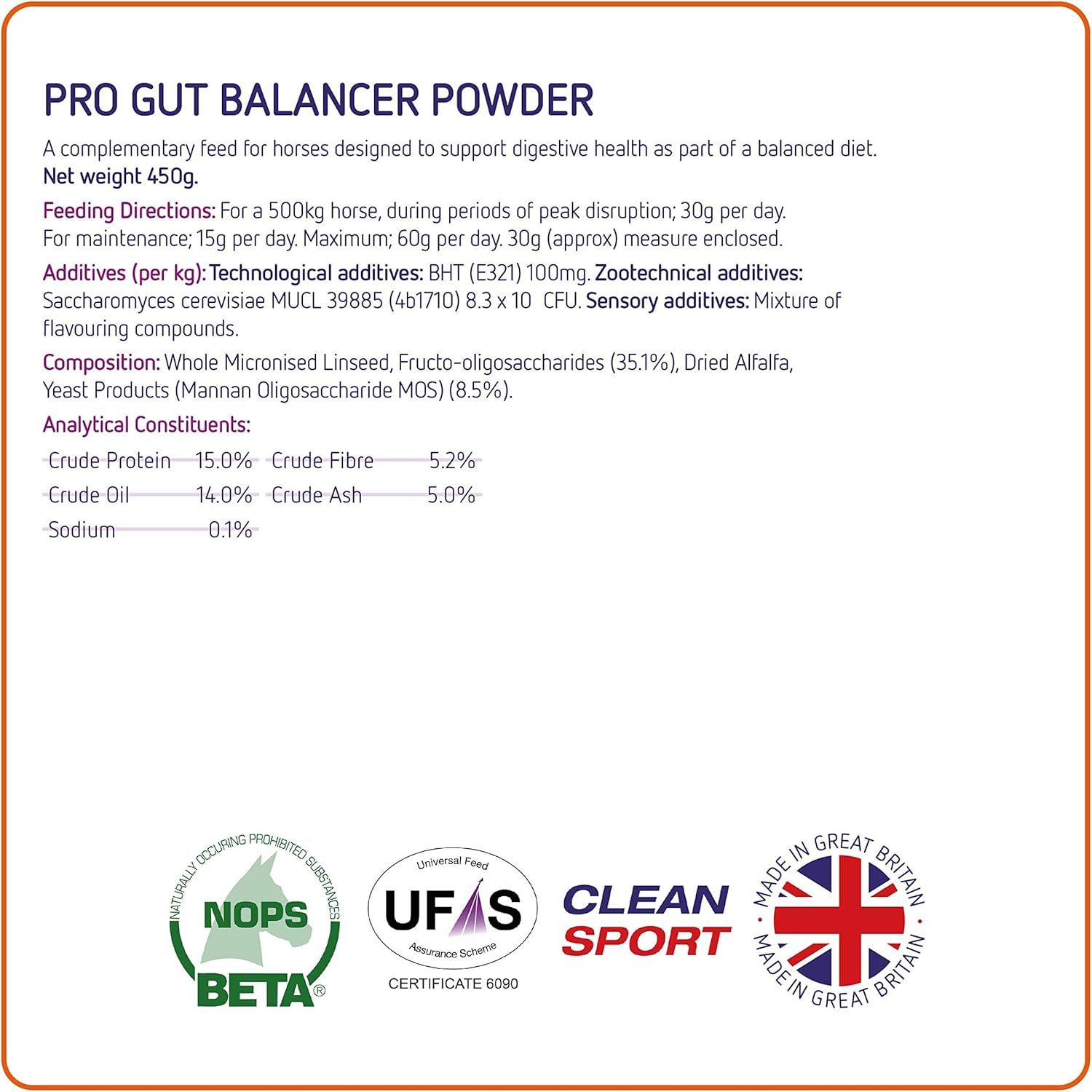 Equine America Pro Gut Balancer | Premium Ready To Use Horse & Pony Supplement | Support For Digestive Function & Performance | 450G