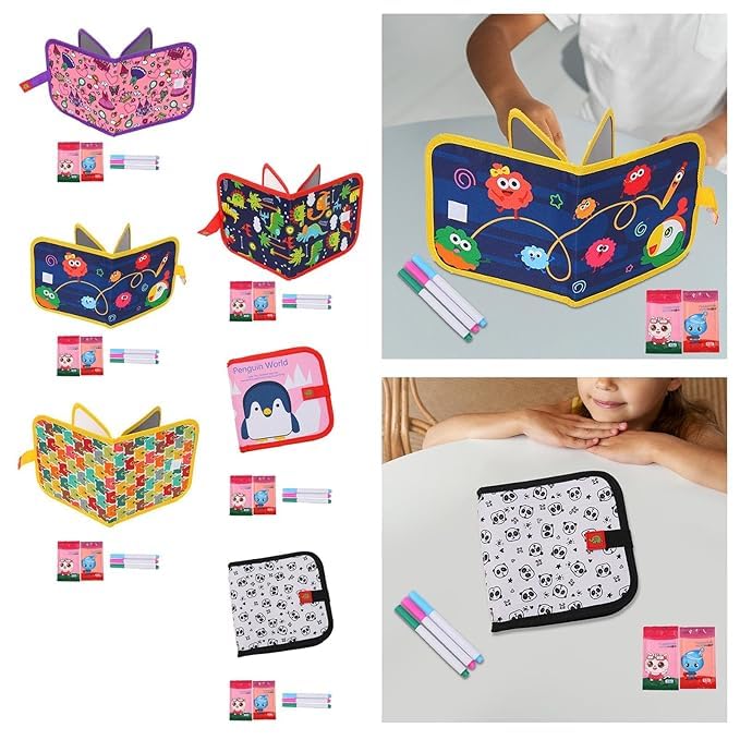 The Erasable Doodle Book Set is a fun, mess-free way to spark creativity and learning in kids. This reusable drawing pad comes with vibrant, easy-to-clean markers, allowing children to draw, write, and erase endlessly. Perfect for road trips, airplane rides, or quiet time at home, it’s a portable art toy that keeps little hands busy and minds engaged. With its durable, wipe-clean pages and compact design, it's ideal for travel and on-the-go fun. Whether used for games, learning activities, or free drawing, this doodle book encourages imagination, fine motor skills, and screen-free entertainment for kids of all ages