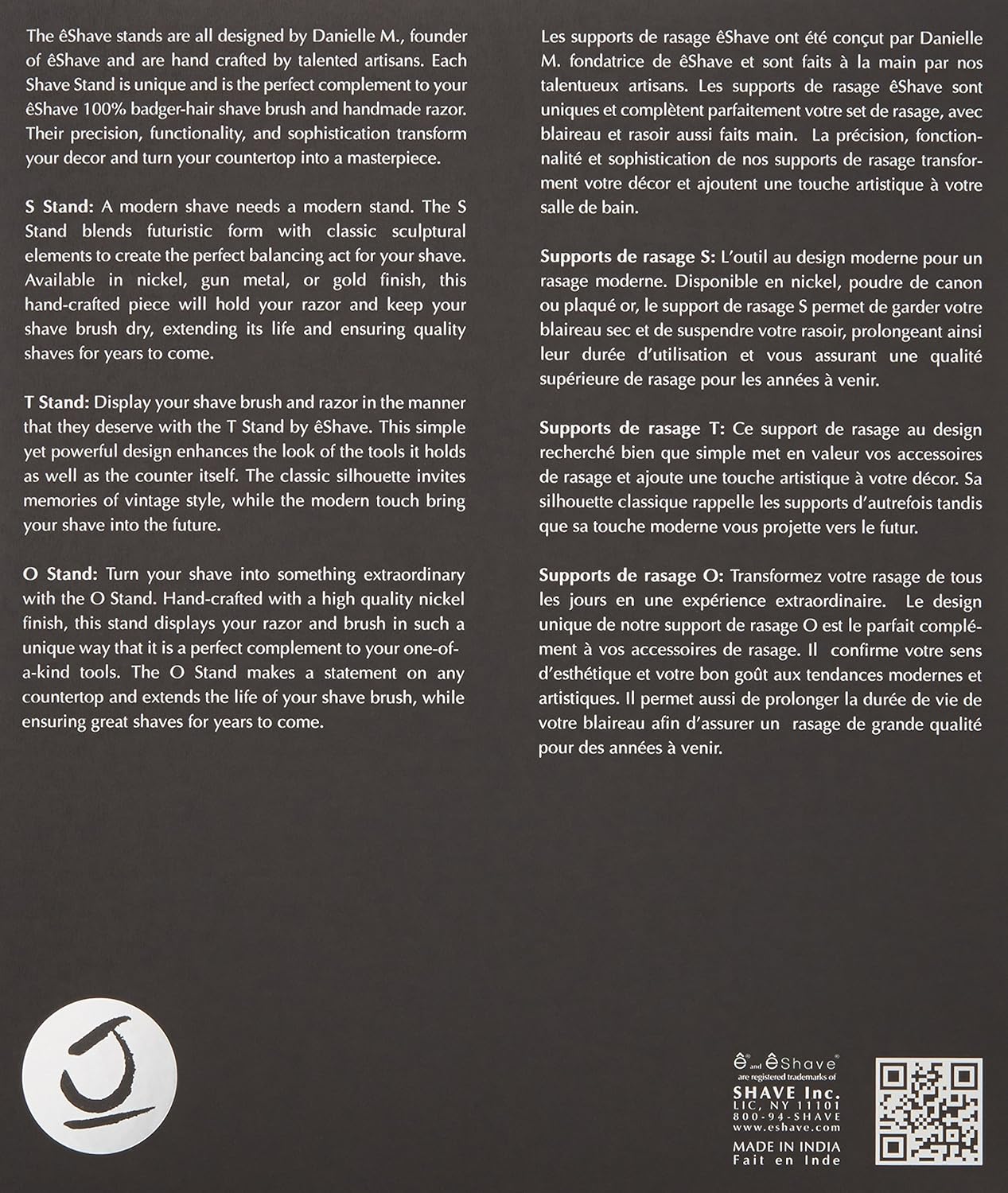 Keeps eShave brush and razor clean, dry and hygienic Features flowing design for proper storage and visual interest Hand-crafted, nickel-plated design Rust and tarnish-proof See more product details,Keeps eShave brush and razor clean, dry and hygienic,Features flowing design for proper storage and visual interest,Hand-crafted, nickel-plated design,Rust and tarnish-proof