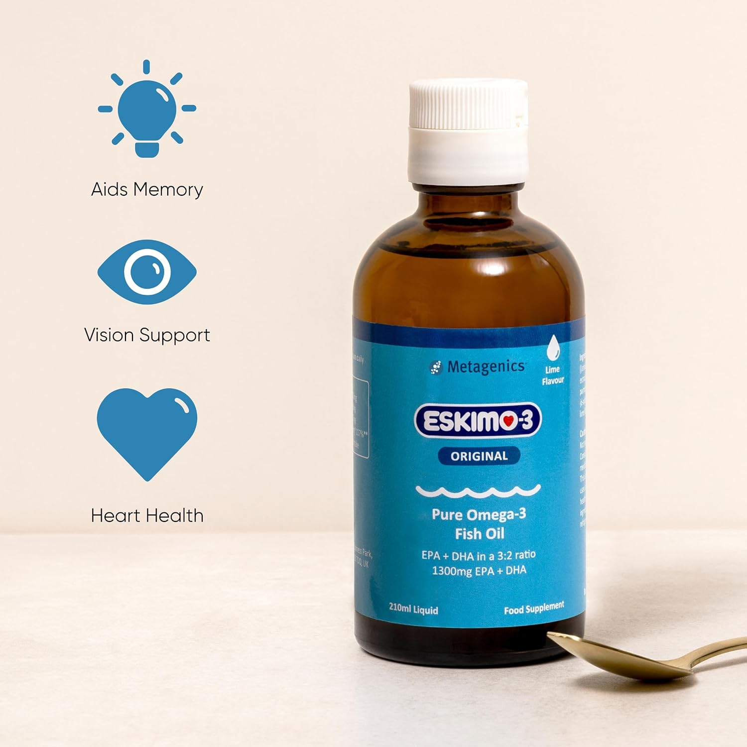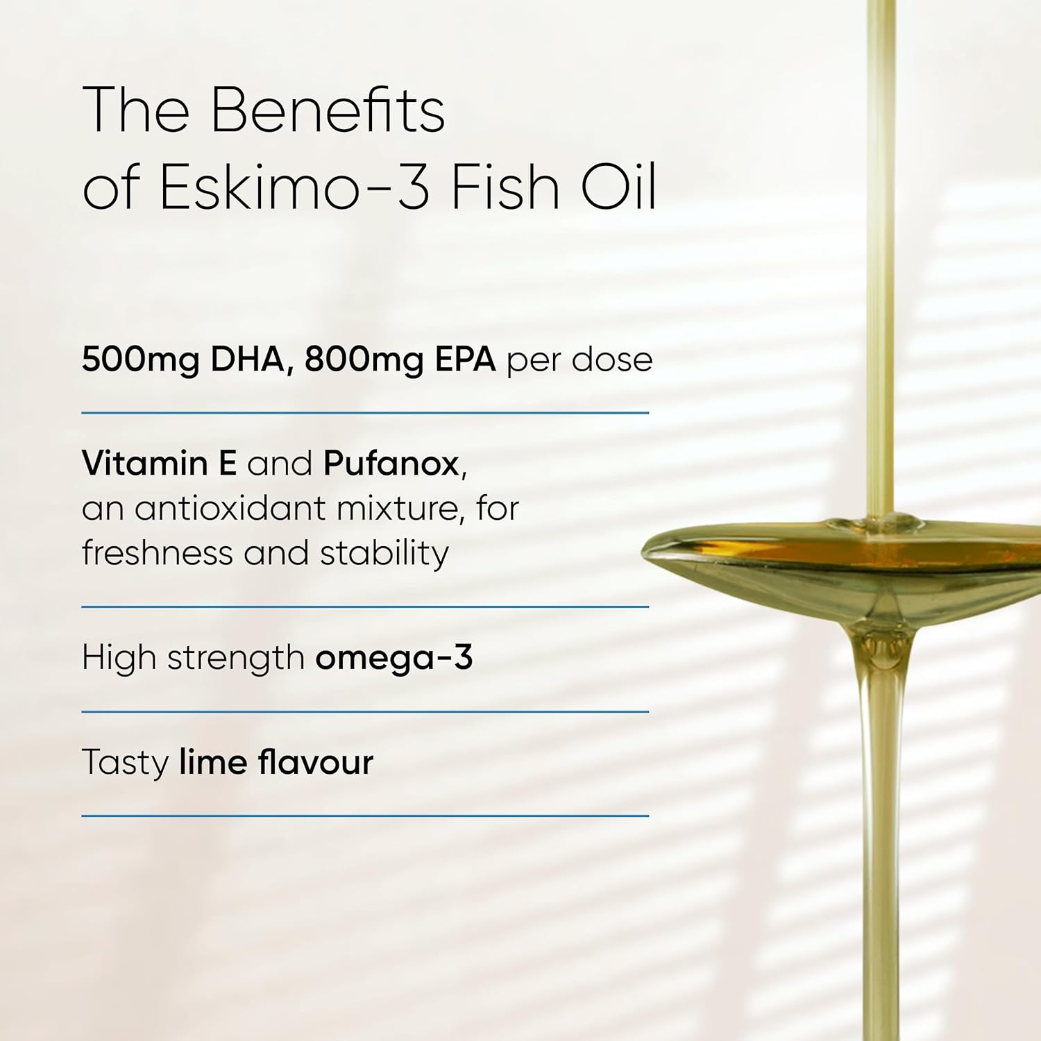 Eskimo-3 Fish Oil Liquid By Metagenics - Source Of Omega-3 And Essential Fatty Acids Epa & Dha - Lime, 210Ml